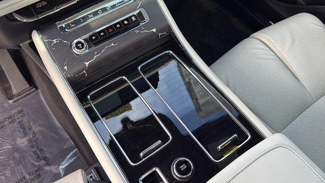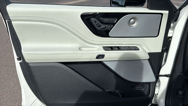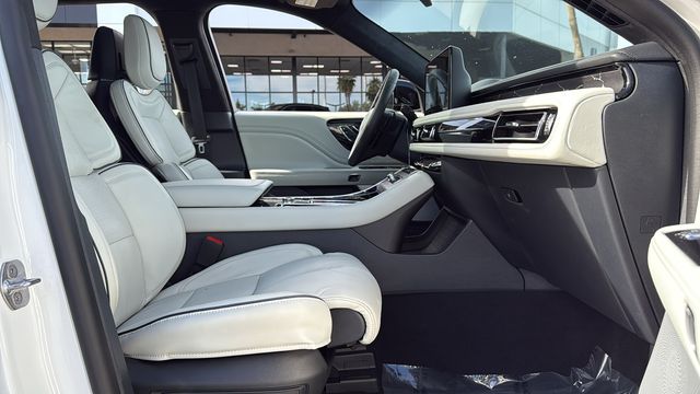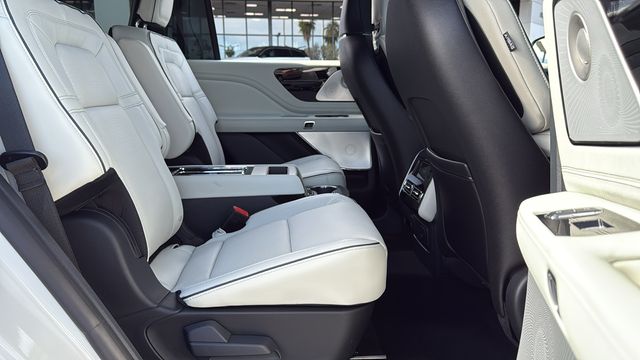 This Lincoln Aviator is equipped with Equipment Group 800A, Jet Appearance Package (Black Exterior Elements, Body-Color Exterior Elements, and Wheels: 22" Ebony Black Bright-Machined), 28 Speakers, 30-Way Perfect Position Seats w/Active Motion, 3rd row seats: split-bench, 4-Wheel Disc Brakes, ABS brakes, Adaptive suspension, Air Conditioning, All-Weather 1st & 2nd Row Floor Liners (16A), Alloy wheels, AM/FM radio: SiriusXM, Apple CarPlay/Android Auto, Audio memory, Auto High-beam Headlights, Auto-dimming door mirrors, Auto-dimming Rear-View mirror, Automatic temperature control, Brake assist, Bumpers: body-color, Compass, Delay-off headlights, Driver door bin, Driver vanity mirror, Dual front impact airbags, Dual front side impact airbags, Electronic Stability Control, Emergency communication system: 911 Assist, Four wheel independent suspension, Front anti-roll bar, Front Bucket Seats, Front Center Armrest, Front dual zone A/C, Front reading lights, Full Rear Console, Fully automatic headlights, Garage door transmitter, Genuine wood console insert, Genuine wood dashboard insert, Head restraints memory, Heads-Up Display, Heated door mirrors, Heated front seats, Heated rear seats, Heated steering wheel, HVAC memory, Illuminated entry, Knee airbag, Leather steering wheel, Lincoln Digital Experience, Low tire pressure warning, Memory seat, Navigation system: Connected Navigation (1-year trial), Occupant sensing airbag, Outside temperature display, Overhead airbag, Overhead console, Panic alarm, Passenger door bin, Passenger vanity mirror, Power adjustable front head restraints, Power door mirrors, Power driver seat, Power Liftgate, Power moonroof: Panoramic Vista Roof, Power passenger seat, Power steering, Power windows, Radio data system, Radio: Revel Ultima 3D Audio System w/28 Speakers, Rain sensing wipers, Rear air conditioning, Rear anti-roll bar, Rear audio controls, Rear dual zone A/C, Rear reading lights, Rear window defroster, Rear window wiper, Remote keyless entry, Savannah Leather Heated/Ventilated Seats (76A), Security system, SiriusXM, Speed control, Speed-Sensitive Wipers, Split folding rear seat, Spoiler, Steering wheel memory, Steering wheel mounted A/C controls, Steering wheel mounted audio controls, Tachometer, Telescoping steering wheel, Tilt steering wheel, Traction control, Trip computer, Turn signal indicator mirrors, Variably intermittent wipers, Ventilated front seats, Ventilated rear seats, and Wheels: 22" Bright-Machined Aluminum. Price includes: $2000 - Wishlist Bonus Cash. Exp. 01/02/2026 $5000 - Retail Customer Cash. Exp. 01/05/2026