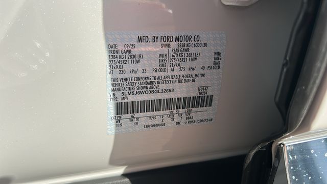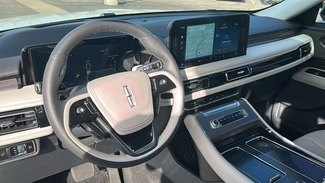 This Lincoln Aviator is equipped with Equipment Group 101A (Advanced Heads-Up Display, Auto Air Refresh, Heated 2nd Row Seats, Lincoln BlueCruise Equipped (4-Years Included), Radio: Revel Audio System w/14 Speakers, and Wireless Charging), 10 Speakers, 3rd row seats: split-bench, 4-Wheel Disc Brakes, ABS brakes, Adaptive suspension, Air Conditioning, All-Weather 1st & 2nd Row Floor Liners, Alloy wheels, AM/FM radio: SiriusXM, Apple CarPlay/Android Auto, Audio memory, Auto High-beam Headlights, Auto-dimming door mirrors, Auto-dimming Rear-View mirror, Automatic temperature control, Brake assist, Bumpers: body-color, Compass, Delay-off headlights, Driver door bin, Driver vanity mirror, Dual front impact airbags, Dual front side impact airbags, Electronic Stability Control, Emergency communication system: 911 Assist, Four wheel independent suspension, Front anti-roll bar, Front Bucket Seats, Front Center Armrest, Front dual zone A/C, Front reading lights, Fully automatic headlights, Garage door transmitter, Heated door mirrors, Heated front seats, Heated steering wheel, HVAC memory, Illuminated entry, Knee airbag, Leather steering wheel, Lincoln Digital Experience, Lincoln Soft Touch Heated/Ventilated Comfort Seats, Low tire pressure warning, Memory seat, Navigation system: Connected Navigation (1-year trial), Occupant sensing airbag, Outside temperature display, Overhead airbag, Overhead console, Panic alarm, Passenger door bin, Passenger vanity mirror, Power door mirrors, Power driver seat, Power Liftgate, Power moonroof: Panoramic Vista Roof, Power passenger seat, Power steering, Power windows, Radio data system, Radio: Lincoln Premium AM/FM/HD Audio System, Rain sensing wipers, Rear air conditioning, Rear anti-roll bar, Rear audio controls, Rear reading lights, Rear window defroster, Rear window wiper, Remote keyless entry, Security system, SiriusXM, Speed control, Speed-Sensitive Wipers, Split folding rear seat, Spoiler, Steering wheel memory, Steering wheel mounted A/C controls, Steering wheel mounted audio controls, Tachometer, Telescoping steering wheel, Tilt steering wheel, Traction control, Trip computer, Turn signal indicator mirrors, Variably intermittent wipers, Ventilated front seats, Wheels: 20" Magnetic Bright-Machined Aluminum, and Wheels: 21" Bright Machined Aluminum. Price includes: $2000 - Wishlist Bonus Cash. Exp. 01/02/2026 $5000 - Retail Customer Cash. Exp. 01/05/2026
