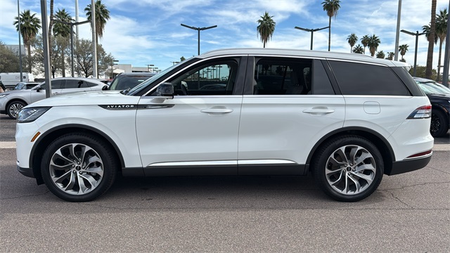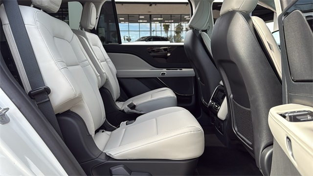 This Lincoln Aviator is equipped with Equipment Group 100A (Auto Air Refresh, Lincoln BlueCruise Equipped (4-Years Included), and Wireless Charging), 10 Speakers, 3rd row seats: split-bench, 4-Wheel Disc Brakes, ABS brakes, Adaptive suspension, Air Conditioning, Alloy wheels, AM/FM radio: SiriusXM, Apple CarPlay/Android Auto, Audio memory, Auto High-beam Headlights, Auto-dimming door mirrors, Auto-dimming Rear-View mirror, Automatic temperature control, Brake assist, Bumpers: body-color, Compass, Delay-off headlights, Driver door bin, Driver vanity mirror, Dual front impact airbags, Dual front side impact airbags, Electronic Stability Control, Emergency communication system: 911 Assist, Four wheel independent suspension, Front anti-roll bar, Front Bucket Seats, Front Center Armrest, Front dual zone A/C, Front reading lights, Fully automatic headlights, Garage door transmitter, Heated door mirrors, Heated front seats, Heated steering wheel, HVAC memory, Illuminated entry, Knee airbag, Leather steering wheel, Lincoln Digital Experience, Lincoln Soft Touch Heated/Ventilated Comfort Seats, Low tire pressure warning, Memory seat, Navigation system: Connected Navigation (1-year trial), Occupant sensing airbag, Outside temperature display, Overhead airbag, Overhead console, Panic alarm, Passenger door bin, Passenger vanity mirror, Power door mirrors, Power driver seat, Power Liftgate, Power moonroof: Panoramic Vista Roof, Power passenger seat, Power steering, Power windows, Radio data system, Radio: Lincoln Premium AM/FM/HD Audio System, Rain sensing wipers, Rear air conditioning, Rear anti-roll bar, Rear audio controls, Rear reading lights, Rear window defroster, Rear window wiper, Remote keyless entry, Security system, SiriusXM, Speed control, Speed-Sensitive Wipers, Split folding rear seat, Spoiler, Steering wheel memory, Steering wheel mounted A/C controls, Steering wheel mounted audio controls, Tachometer, Telescoping steering wheel, Tilt steering wheel, Traction control, Trip computer, Turn signal indicator mirrors, Variably intermittent wipers, Ventilated front seats, Wheels: 20" Magnetic Bright-Machined Aluminum, and Wheels: 21" Bright Machined Aluminum. Price includes: $1000 - Wishlist Bonus Cash. Exp. 01/05/2026 $5000 - Retail Customer Cash. Exp. 01/05/2026