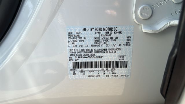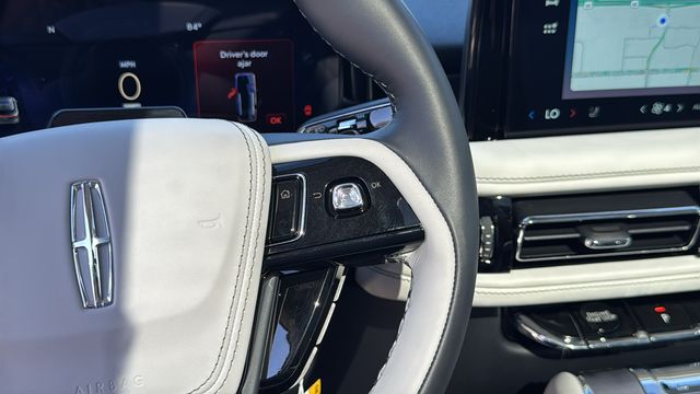 This Lincoln Aviator is equipped with Equipment Group 101A (Advanced Heads-Up Display, Auto Air Refresh, Heated 2nd Row Seats, Lincoln BlueCruise Equipped (4-Years Included), Radio: Revel Audio System w/14 Speakers, and Wireless Charging), 10 Speakers, 3rd row seats: split-bench, 4-Wheel Disc Brakes, ABS brakes, Adaptive suspension, Air Conditioning, All-Weather 1st & 2nd Row Floor Liners (16A), Alloy wheels, AM/FM radio: SiriusXM, Apple CarPlay/Android Auto, Audio memory, Auto High-beam Headlights, Auto-dimming door mirrors, Auto-dimming Rear-View mirror, Automatic temperature control, Brake assist, Bumpers: body-color, Compass, Delay-off headlights, Driver door bin, Driver vanity mirror, Dual front impact airbags, Dual front side impact airbags, Electronic Stability Control, Emergency communication system: 911 Assist, Four wheel independent suspension, Front anti-roll bar, Front Bucket Seats, Front Center Armrest, Front dual zone A/C, Front reading lights, Fully automatic headlights, Garage door transmitter, Heated door mirrors, Heated front seats, Heated steering wheel, HVAC memory, Illuminated entry, Knee airbag, Leather steering wheel, Lincoln Digital Experience, Lincoln Soft Touch Heated/Ventilated Comfort Seats, Low tire pressure warning, Memory seat, Navigation system: Connected Navigation (1-year trial), Occupant sensing airbag, Outside temperature display, Overhead airbag, Overhead console, Panic alarm, Passenger door bin, Passenger vanity mirror, Power door mirrors, Power driver seat, Power Liftgate, Power moonroof: Panoramic Vista Roof, Power passenger seat, Power steering, Power windows, Radio data system, Radio: Lincoln Premium AM/FM/HD Audio System, Rain sensing wipers, Rear air conditioning, Rear anti-roll bar, Rear audio controls, Rear reading lights, Rear window defroster, Rear window wiper, Remote keyless entry, Security system, SiriusXM, Speed control, Speed-Sensitive Wipers, Split folding rear seat, Spoiler, Steering wheel memory, Steering wheel mounted A/C controls, Steering wheel mounted audio controls, Tachometer, Telescoping steering wheel, Tilt steering wheel, Traction control, Trip computer, Turn signal indicator mirrors, Variably intermittent wipers, Ventilated front seats, Wheels: 20" Magnetic Bright-Machined Aluminum, and Wheels: 21" Bright Machined Aluminum. Price includes: $2000 - Wishlist Bonus Cash. Exp. 01/02/2026 $5000 - Retail Customer Cash. Exp. 01/05/2026