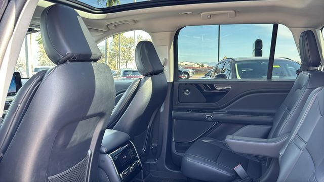 This Lincoln Aviator is equipped with Equipment Group 101A (Advanced Heads-Up Display, Auto Air Refresh, Heated 2nd Row Seats, Lincoln BlueCruise Equipped (4-Years Included), Radio: Revel Audio System w/14 Speakers, and Wireless Charging), Jet Appearance Package (Black Exterior Elements, Body-Color Exterior Elements, and Wheels: 21" Bright-Machined Aluminum), 10 Speakers, 3rd row seats: split-bench, 4-Wheel Disc Brakes, ABS brakes, Adaptive suspension, Air Conditioning, All-Weather 1st & 2nd Row Floor Liners, Alloy wheels, AM/FM radio: SiriusXM, Apple CarPlay/Android Auto, Audio memory, Auto High-beam Headlights, Auto-dimming door mirrors, Auto-dimming Rear-View mirror, Automatic temperature control, Brake assist, Bumpers: body-color, Compass, Delay-off headlights, Driver door bin, Driver vanity mirror, Dual front impact airbags, Dual front side impact airbags, Electronic Stability Control, Emergency communication system: 911 Assist, Four wheel independent suspension, Front anti-roll bar, Front Bucket Seats, Front Center Armrest, Front dual zone A/C, Front reading lights, Fully automatic headlights, Garage door transmitter, Heated door mirrors, Heated front seats, Heated steering wheel, HVAC memory, Illuminated entry, Knee airbag, Leather steering wheel, Lincoln Digital Experience, Lincoln Soft Touch Heated/Ventilated Comfort Seats, Low tire pressure warning, Memory seat, Navigation system: Connected Navigation (1-year trial), Occupant sensing airbag, Outside temperature display, Overhead airbag, Overhead console, Panic alarm, Passenger door bin, Passenger vanity mirror, Power door mirrors, Power driver seat, Power Liftgate, Power moonroof: Panoramic Vista Roof, Power passenger seat, Power steering, Power windows, Radio data system, Radio: Lincoln Premium AM/FM/HD Audio System, Rain sensing wipers, Rear air conditioning, Rear anti-roll bar, Rear audio controls, Rear reading lights, Rear window defroster, Rear window wiper, Remote keyless entry, Security system, SiriusXM, Speed control, Speed-Sensitive Wipers, Split folding rear seat, Spoiler, Steering wheel memory, Steering wheel mounted A/C controls, Steering wheel mounted audio controls, Tachometer, Telescoping steering wheel, Tilt steering wheel, Traction control, Trip computer, Turn signal indicator mirrors, Variably intermittent wipers, Ventilated front seats, and Wheels: 20" Magnetic Bright-Machined Aluminum. Price includes: $1000 - Bonus Cash. Exp. 03/31/2026 $5000 - Retail Customer Cash. Exp. 03/31/2026