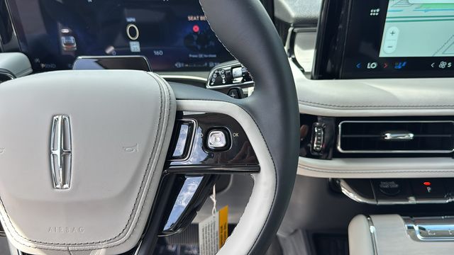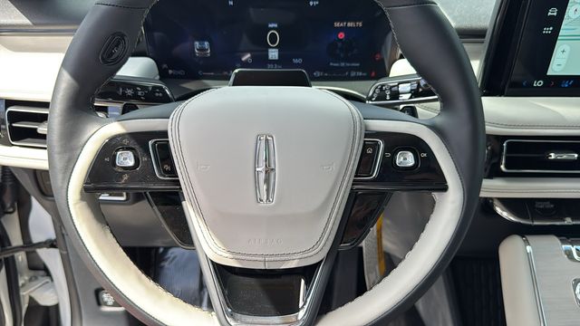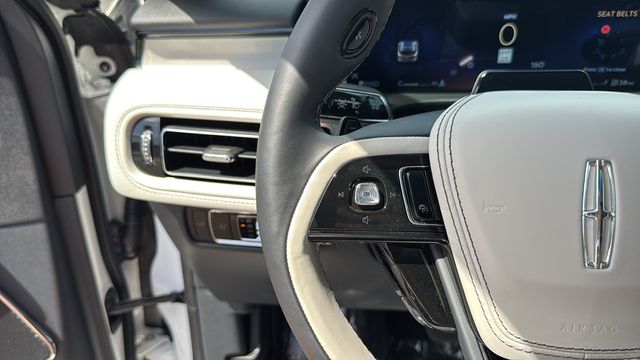 This Lincoln Aviator is equipped with Equipment Group 200A (Advanced Heads-Up Display, Auto Air Refresh, Lincoln BlueCruise Equipped (4-Years Included), and Wireless Charging Pad), Illumination Package (Adaptive Dynamic Bending Lighting, Adaptive Pixel LED Headlamps, Illuminated Lincoln Star in Grille, Lincoln Dynamic Signature Lighting, and Speed Dependent Lighting), 14 Speakers, 2nd Row Bench Seat, 3rd row seats: split-bench, 4-Wheel Disc Brakes, 40/Mini Console/40 Dual Captain's Chairs, ABS brakes, Adaptive suspension, Air Conditioning, All-Weather 1st & 2nd Row Floor Liners (16A), Alloy wheels, AM/FM radio: SiriusXM, Apple CarPlay/Android Auto, Audio memory, Auto High-beam Headlights, Auto-dimming door mirrors, Auto-dimming Rear-View mirror, Automatic temperature control, Brake assist, Bumpers: body-color, Compass, Delay-off headlights, Driver door bin, Driver vanity mirror, Dual front impact airbags, Dual front side impact airbags, Electronic Stability Control, Emergency communication system: 911 Assist, Four wheel independent suspension, Front anti-roll bar, Front Bucket Seats, Front Center Armrest, Front dual zone A/C, Front reading lights, Fully automatic headlights, Garage door transmitter, Genuine wood console insert, Genuine wood dashboard insert, Heads-Up Display, Heated door mirrors, Heated front seats, Heated steering wheel, HVAC memory, Illuminated entry, Knee airbag, Leather steering wheel, Lincoln Digital Experience, Low tire pressure warning, Memory seat, Navigation system: Connected Navigation (1-year trial), Occupant sensing airbag, Outside temperature display, Overhead airbag, Overhead console, Panic alarm, Passenger door bin, Passenger vanity mirror, Power door mirrors, Power driver seat, Power Liftgate, Power moonroof: Panoramic Vista Roof, Power passenger seat, Power steering, Power windows, Premium Lthr Heated/Ventilated Fnt Captain's Chairs, Radio data system, Radio: Revel Audio System w/14 Speakers, Rain sensing wipers, Rear air conditioning, Rear anti-roll bar, Rear audio controls, Rear dual zone A/C, Rear reading lights, Rear window defroster, Rear window wiper, Remote keyless entry, Security system, SiriusXM, Speed control, Speed-Sensitive Wipers, Split folding rear seat, Spoiler, Steering wheel memory, Steering wheel mounted A/C controls, Steering wheel mounted audio controls, Tachometer, Telescoping steering wheel, Tilt steering wheel, Traction control, Trip computer, Turn signal indicator mirrors, Variably intermittent wipers, Ventilated front seats, Wheels: 21" Bright-Machined Aluminum, and Wheels: 22" Bright-Machined Aluminum. Price includes: $2000 - Wishlist Bonus Cash. Exp. 01/02/2026 $5000 - Retail Customer Cash. Exp. 01/05/2026