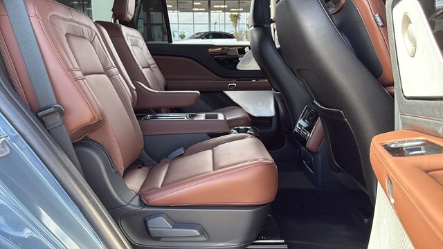 This Lincoln Aviator is equipped with Equipment Group 200A (Advanced Heads-Up Display, Auto Air Refresh, Lincoln BlueCruise Equipped (4-Years Included), and Wireless Charging Pad), Illumination Package (Adaptive Dynamic Bending Lighting, Adaptive Pixel LED Headlamps, Illuminated Lincoln Star in Grille, Lincoln Dynamic Signature Lighting, and Speed Dependent Lighting), Jet Appearance Package (40/Mini Console/40 Dual Captain's Chairs, Black Exterior Elements, Body-Color Exterior Elements, and Wheels: 22" Black Aluminum w/Adaptive Suspension), Luxury Package (30-Way Perfect Position Seats w/Active Motion, Heated & Ventilated Rear Seats, and Radio: Revel Ultima 3D Audio System w/28 Speakers), 14 Speakers, 3rd row seats: split-bench, 4-Wheel Disc Brakes, ABS brakes, Adaptive suspension, Air Conditioning, Alloy wheels, AM/FM radio: SiriusXM, Apple CarPlay/Android Auto, Audio memory, Auto High-beam Headlights, Auto-dimming door mirrors, Auto-dimming Rear-View mirror, Automatic temperature control, Brake assist, Bumpers: body-color, Compass, Delay-off headlights, Driver door bin, Driver vanity mirror, Dual front impact airbags, Dual front side impact airbags, Electronic Stability Control, Emergency communication system: 911 Assist, Four wheel independent suspension, Front anti-roll bar, Front Bucket Seats, Front Center Armrest, Front dual zone A/C, Front reading lights, Full Rear Console, Fully automatic headlights, Garage door transmitter, Genuine wood console insert, Genuine wood dashboard insert, Heads-Up Display, Heated door mirrors, Heated front seats, Heated steering wheel, HVAC memory, Illuminated entry, Knee airbag, Leather steering wheel, Lincoln Digital Experience, Low tire pressure warning, Memory seat, Navigation system: Connected Navigation (1-year trial), Occupant sensing airbag, Outside temperature display, Overhead airbag, Overhead console, Panic alarm, Passenger door bin, Passenger vanity mirror, Power door mirrors, Power driver seat, Power Liftgate, Power moonroof: Panoramic Vista Roof, Power passenger seat, Power steering, Power windows, Premium Lthr Heated/Ventilated Fnt Captain's Chairs, Radio data system, Radio: Revel Audio System w/14 Speakers, Rain sensing wipers, Rear air conditioning, Rear anti-roll bar, Rear audio controls, Rear dual zone A/C, Rear reading lights, Rear window defroster, Rear window wiper, Remote keyless entry, Security system, SiriusXM, Speed control, Speed-Sensitive Wipers, Split folding rear seat, Spoiler, Steering wheel memory, Steering wheel mounted A/C controls, Steering wheel mounted audio controls, Tachometer, Telescoping steering wheel, Tilt steering wheel, Traction control, Trip computer, Turn signal indicator mirrors, Variably intermittent wipers, Ventilated front seats, and Wheels: 21" Bright-Machined Aluminum. Price includes: $2000 - Wishlist Bonus Cash. Exp. 01/02/2026 $5000 - Retail Customer Cash. Exp. 01/05/2026