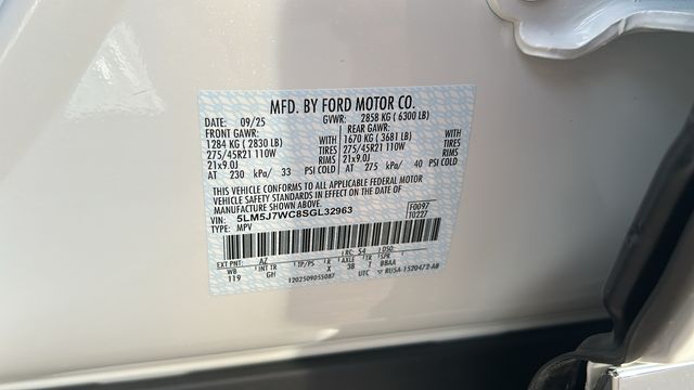 This Lincoln Aviator is equipped with Equipment Group 200A (Advanced Heads-Up Display, Auto Air Refresh, Lincoln BlueCruise Equipped (4-Years Included), and Wireless Charging Pad), Illumination Package (Adaptive Dynamic Bending Lighting, Adaptive Pixel LED Headlamps, Illuminated Lincoln Star in Grille, Lincoln Dynamic Signature Lighting, and Speed Dependent Lighting), 14 Speakers, 2nd Row Bench Seat, 3rd row seats: split-bench, 4-Wheel Disc Brakes, 40/Mini Console/40 Dual Captain's Chairs, ABS brakes, Adaptive suspension, Air Conditioning, Alloy wheels, AM/FM radio: SiriusXM, Apple CarPlay/Android Auto, Audio memory, Auto High-beam Headlights, Auto-dimming door mirrors, Auto-dimming Rear-View mirror, Automatic temperature control, Brake assist, Bumpers: body-color, Compass, Delay-off headlights, Driver door bin, Driver vanity mirror, Dual front impact airbags, Dual front side impact airbags, Electronic Stability Control, Emergency communication system: 911 Assist, Four wheel independent suspension, Front anti-roll bar, Front Bucket Seats, Front Center Armrest, Front dual zone A/C, Front reading lights, Fully automatic headlights, Garage door transmitter, Genuine wood console insert, Genuine wood dashboard insert, Heads-Up Display, Heated door mirrors, Heated front seats, Heated steering wheel, HVAC memory, Illuminated entry, Knee airbag, Leather steering wheel, Lincoln Digital Experience, Low tire pressure warning, Memory seat, Navigation system: Connected Navigation (1-year trial), Occupant sensing airbag, Outside temperature display, Overhead airbag, Overhead console, Panic alarm, Passenger door bin, Passenger vanity mirror, Power door mirrors, Power driver seat, Power Liftgate, Power moonroof: Panoramic Vista Roof, Power passenger seat, Power steering, Power windows, Premium Lthr Heated/Ventilated Fnt Captain's Chairs, Radio data system, Radio: Revel Audio System w/14 Speakers, Rain sensing wipers, Rear air conditioning, Rear anti-roll bar, Rear audio controls, Rear dual zone A/C, Rear reading lights, Rear window defroster, Rear window wiper, Remote keyless entry, Security system, SiriusXM, Speed control, Speed-Sensitive Wipers, Split folding rear seat, Spoiler, Steering wheel memory, Steering wheel mounted A/C controls, Steering wheel mounted audio controls, Tachometer, Telescoping steering wheel, Tilt steering wheel, Traction control, Trip computer, Turn signal indicator mirrors, Variably intermittent wipers, Ventilated front seats, and Wheels: 21" Bright-Machined Aluminum. Price includes: $2000 - Wishlist Bonus Cash. Exp. 01/02/2026 $5000 - Retail Customer Cash. Exp. 01/05/2026