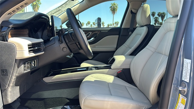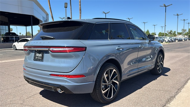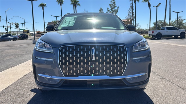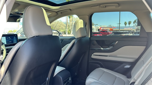 This Lincoln Corsair is equipped with Equipment Group 301A (2 Additional USB Ports in Rear of Center Console, 60/40 EasyFold Rear Seat w/Power Seatback Release, Frameless Auto Dimming Rearview Mirror, Hands-Free Liftgate, Heated Sideview Mirrors, Heated Steering Wheel, Heated/Ventilated Driver & Front Passenger Seats, Phone As A Key (PAAK), Power Tilt/Telescoping Steering Column w/Memory, Rain Sensing Wipers, Universal Garage Door Opener, Windshield Wiper De-Icer, and Wireless Charging Pad), 2.5L i-VCT, 19" Bright Machined Aluminum Wheels, 360-Degree Camera, 4-Wheel Disc Brakes, 9 Speakers, ABS brakes, Adaptive suspension, Air Conditioning, Alexa Built-In, Alloy wheels, AM/FM radio: SiriusXM with 360L, Apple CarPlay/Android Auto, Auto High-beam Headlights, Auto-dimming Rear-View mirror, Automatic temperature control, Brake assist, Bumpers: body-color, Compass, Delay-off headlights, Driver door bin, Driver vanity mirror, Dual front impact airbags, Dual front side impact airbags, Electronic Stability Control, Emergency communication system: 911 Assist, Four wheel independent suspension, Front anti-roll bar, Front Bucket Seats, Front Center Armrest, Front dual zone A/C, Front Parking Sensors, Front reading lights, Fully automatic headlights, Heated door mirrors, Heated front seats, Illuminated entry, Knee airbag, Leather steering wheel, Low tire pressure warning, Memory seat, Navigation system: Connected Navigation (4-year trial), Occupant sensing airbag, Outside temperature display, Overhead airbag, Overhead console, Panic alarm, Passenger door bin, Passenger vanity mirror, Post-Collision Braking, Power door mirrors, Power driver seat, Power Liftgate, Power moonroof: Panoramic Vista Roof, Power passenger seat, Power steering, Power windows, Premium Leather-Trimmed Heated Captain's Chairs, Radio data system, Radio: Lincoln Premium Audio System w/MP3, Rear anti-roll bar, Rear Parking Sensors, Rear reading lights, Rear seat center armrest, Rear window defroster, Rear window wiper, Remote keyless entry, Reverse Brake Assist, Security system, SiriusXM w/360L Radio, Speed control, Speed-sensing steering, Speed-Sensitive Wipers, Split folding rear seat, Spoiler, Steering wheel mounted A/C controls, Steering wheel mounted audio controls, SYNC 4 Communications & Entertainment System, Tachometer, Telescoping steering wheel, Tilt steering wheel, Traction control, Trip computer, Variably intermittent wipers, and Wheels: 20" Bright Machined Aluminum.