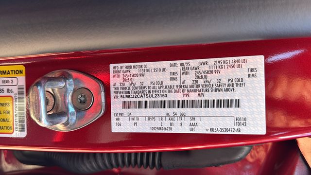 This Lincoln Corsair is equipped with Equipment Group 202A (2 Additional USB Ports in Rear of Center Console, 60/40 EasyFold Rear Seat w/Power Seatback Release, Auto Air Refresh (Ultra Fresh Cabin), Black Roof Rack Side Rails, Frameless Auto Dimming Rearview Mirror, Hands-Free Liftgate, Head-Up Display, Heated Rear Seat, Heated Sideview Mirrors, Heated Steering Wheel, Heated/Ventilated Driver & Front Passenger Seats, Lincoln BlueCruise (4 Years Included), Panoramic Vista Roof w/Power Shade, Phone As A Key (PAAK), Power Tilt/Telescoping Steering Column w/Memory, Radio: Revel Audio System w/HD Radio & MP3, Rain Sensing Wipers, Universal Garage Door Opener, Windshield Wiper De-Icer, and Wireless Charging Pad), 19" Bright Machined Aluminum Wheels, 4-Wheel Disc Brakes, 9 Speakers, ABS brakes, Air Conditioning, Alexa Built-In, Alloy wheels, AM/FM radio: SiriusXM with 360L, Apple CarPlay/Android Auto, Auto High-beam Headlights, Auto-dimming Rear-View mirror, Automatic temperature control, Brake assist, Bumpers: body-color, Compass, Delay-off headlights, Driver door bin, Driver State Detection, Driver vanity mirror, Dual front impact airbags, Dual front side impact airbags, Electronic Stability Control, Emergency communication system: 911 Assist, Four wheel independent suspension, Front anti-roll bar, Front Bucket Seats, Front Center Armrest, Front dual zone A/C, Front reading lights, Fully automatic headlights, Heated door mirrors, Heated front seats, Illuminated entry, Knee airbag, Leather steering wheel, Low tire pressure warning, Memory seat, Navigation system: Connected Navigation (4-year trial), Occupant sensing airbag, Outside temperature display, Overhead airbag, Overhead console, Panic alarm, Passenger door bin, Passenger vanity mirror, Power door mirrors, Power driver seat, Power Liftgate, Power passenger seat, Power steering, Power windows, Premium Leather-Trimmed Heated Captain's Chairs, Radio data system, Radio: Lincoln Premium Audio System w/MP3, Rear anti-roll bar, Rear Parking Sensors, Rear reading lights, Rear seat center armrest, Rear window defroster, Rear window wiper, Remote keyless entry, Security system, SiriusXM w/360L Radio, Speed control, Speed-sensing steering, Speed-Sensitive Wipers, Split folding rear seat, Spoiler, Steering wheel mounted A/C controls, Steering wheel mounted audio controls, SYNC 4 Communications & Entertainment System, Tachometer, Telescoping steering wheel, Tilt steering wheel, Traction control, Trip computer, Variably intermittent wipers, and Wheels: 20" Bright Machined Aluminum. Price includes: $2000 - Wishlist Bonus Cash. Exp. 01/02/2026 $3000 - Retail Customer Cash. Exp. 01/05/2026