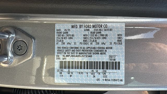This Lincoln Nautilus is equipped with Equipment Group 202A Reserve II (110V Power Converter, Auto Air Refresh, BlueCruise Equipped (4-Years Included), Digital Scent, Hands-Free Power Liftgate, Panoramic Vista Roof w/Powershade, and Rear Heated Seats w/Switch Control), 10 Speakers, 4-Wheel Disc Brakes, ABS brakes, Adaptive suspension, Air Conditioning, Alloy wheels, AM/FM radio: SiriusXM with 360L, Apple CarPlay/Android Auto, Auto High-beam Headlights, Auto tilt-away steering wheel, Auto-dimming Rear-View mirror, Automatic temperature control, Brake assist, Bumpers: body-color, Compass, Delay-off headlights, Driver door bin, Driver vanity mirror, Dual front impact airbags, Dual front side impact airbags, Electronic Stability Control, Emergency communication system: 911 Assist, Exterior Parking Camera Rear, Four wheel independent suspension, Front anti-roll bar, Front Bucket Seats, Front Center Armrest w/Storage, Front dual zone A/C, Front reading lights, Fully automatic headlights, Garage door transmitter: HomeLink, Heated door mirrors, Heated front seats, Heated steering wheel, Illuminated entry, Knee airbag, Leather steering wheel, Lincoln Digital Experience, Low tire pressure warning, Memory seat, Navigation System, Occupant sensing airbag, Outside temperature display, Overhead airbag, Overhead console, Panic alarm, Passenger door bin, Passenger vanity mirror, Power door mirrors, Power driver seat, Power Liftgate, Power passenger seat, Power steering, Power windows, Prem Lthr-Trimmed Htd/Ventilated Captain's Chairs, Radio data system, Radio: AM/FM Revel Audio System, Rain sensing wipers, Rear anti-roll bar, Rear reading lights, Rear seat center armrest, Rear window defroster, Rear window wiper, Remote keyless entry, Security system, SiriusXM w/360L, Speed control, Speed-sensing steering, Speed-Sensitive Wipers, Split folding rear seat, Spoiler, Steering wheel memory, Steering wheel mounted audio controls, Tachometer, Telescoping steering wheel, Tilt steering wheel, Traction control, Trip computer, Turn signal indicator mirrors, Variably intermittent wipers, and Wheels: 21" Bright Machined Aluminum.