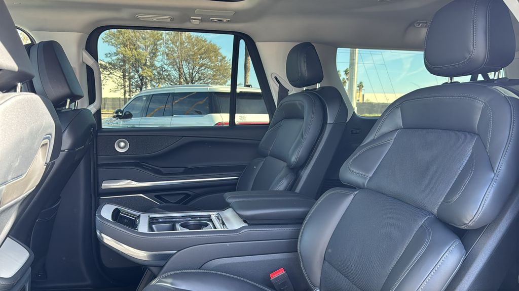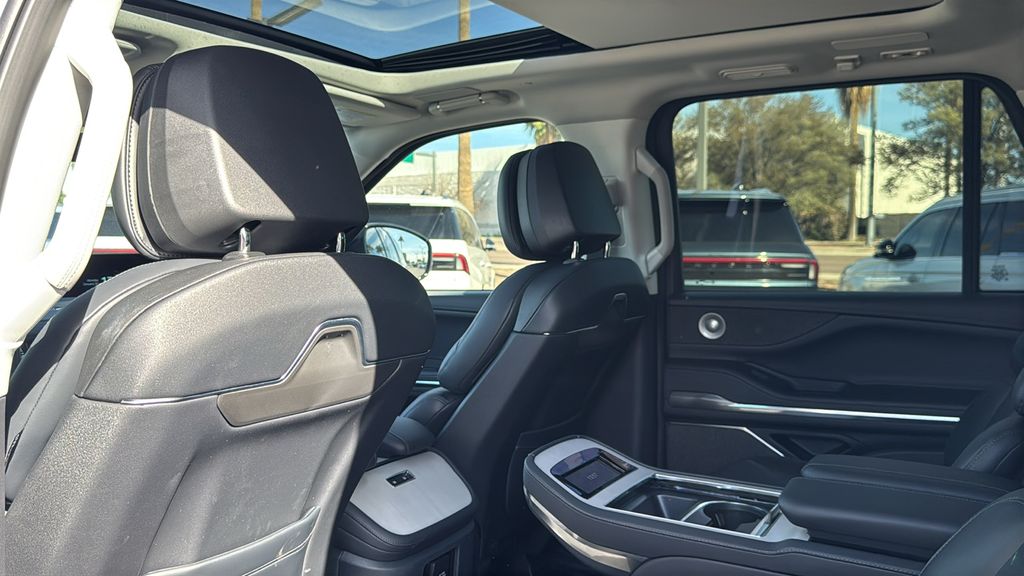 This Lincoln Navigator L is equipped with Equipment Group 202A Reserve II, Heavy-Duty Trailer Tow Package (26mm Engine Radiator and Trailer Brake Controller), 28 Speakers, 2nd Row Heated & Ventilated Dual Captain's Chair, 3rd row seats: split-bench, 4-Wheel Disc Brakes, ABS brakes, Adaptive suspension, Adjustable pedals, Air Conditioning, All-Weather Flr Liners w/Fr & Rr Carpet Floor Mats, Alloy wheels, AM/FM radio: SiriusXM with 360L, Apple CarPlay/Android Auto, Audio memory, Auto High-beam Headlights, Auto Htd & Ventilated Premium Lthr Captain's Chair, Auto Start-Stop Technology, Auto tilt-away steering wheel, Auto-dimming door mirrors, Auto-dimming Rear-View mirror, Auto-leveling suspension, Automatic temperature control, Brake assist, Bumpers: body-color, Compass, Delay-off headlights, Driver door bin, Driver vanity mirror, Driver's Seat Mounted Armrest, Dual front impact airbags, Dual front side impact airbags, Electronic Stability Control, Emergency communication system: 911 Assist, Exterior Parking Camera Rear, Four wheel independent suspension, Front anti-roll bar, Front Bucket Seats, Front dual zone A/C, Front reading lights, Fully automatic headlights, Garage door transmitter, Heated door mirrors, Heated front seats, Heated rear seats, Heated steering wheel, HVAC memory, Illuminated entry, Leather steering wheel, Lincoln Connect, Lincoln Premium Connectivity, Low tire pressure warning, Memory seat, Navigation system: Connected Navigation (1-year trial), Occupant sensing airbag, Outside temperature display, Overhead airbag, Overhead console, Panic alarm, Passenger door bin, Passenger seat mounted armrest, Passenger vanity mirror, Pedal memory, Power adjustable front head restraints, Power adjustable rear head restraints, Power door mirrors, Power driver seat, Power moonroof, Power passenger seat, Power steering, Power windows, Radio data system, Radio: Revel Ultima 3D AM/FM/HD Audio System, Rain sensing wipers, Rear air conditioning, Rear anti-roll bar, Rear audio controls, Rear reading lights, Rear window defroster, Rear window wiper, Reclining 3rd row seat, Remote keyless entry, Security system, SiriusXM w/360L, Speed control, Speed-sensing steering, Speed-Sensitive Wipers, Split folding rear seat, Spoiler, Steering wheel memory, Steering wheel mounted audio controls, Tachometer, Telescoping steering wheel, Tilt steering wheel, Traction control, Trip computer, Turn signal indicator mirrors, Variably intermittent wipers, Ventilated front seats, and Wheels: 22" Dark Tarnished Aluminum. Price includes: $3000 - Retail Customer Cash. Exp. 04/30/2026 $500 - Spring Sales Event Open Bonus Cash. Exp. 04/30/2026