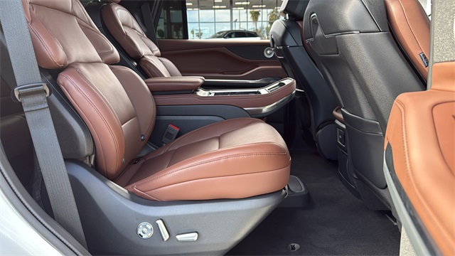 This Lincoln Navigator is equipped with Equipment Group 202A Reserve II, Heavy-Duty Trailer Tow Package (26mm Engine Radiator and Trailer Brake Controller), 4WD, Hot Chocolate Auto Htd &V Leather, 28 Speakers, 2nd Row Heated & Ventilated Dual Captain's Chair, 3rd row seats: split-bench, 4-Wheel Disc Brakes, ABS brakes, Adaptive suspension, Adjustable pedals, Air Conditioning, All-Weather Flr Liners w/Fr & Rr Carpet Floor Mats, Alloy wheels, AM/FM radio: SiriusXM with 360L, Apple CarPlay/Android Auto, Audio memory, Auto High-beam Headlights, Auto Htd & Ventilated Premium Lthr Captain's Chair, Auto Start-Stop Technology, Auto tilt-away steering wheel, Auto-dimming door mirrors, Auto-dimming Rear-View mirror, Auto-leveling suspension, Automatic temperature control, Brake assist, Bumpers: body-color, Compass, Delay-off headlights, Driver door bin, Driver vanity mirror, Driver's Seat Mounted Armrest, Dual front impact airbags, Dual front side impact airbags, Electronic Stability Control, Emergency communication system: 911 Assist, Exterior Parking Camera Rear, Four wheel independent suspension, Front anti-roll bar, Front Bucket Seats, Front dual zone A/C, Front reading lights, Fully automatic headlights, Garage door transmitter, Heated door mirrors, Heated front seats, Heated rear seats, Heated steering wheel, HVAC memory, Illuminated entry, Leather steering wheel, Lincoln Connect, Lincoln Premium Connectivity, Low tire pressure warning, Memory seat, Navigation system: Connected Navigation (1-year trial), Occupant sensing airbag, Outside temperature display, Overhead airbag, Overhead console, Panic alarm, Passenger door bin, Passenger seat mounted armrest, Passenger vanity mirror, Pedal memory, Power adjustable rear head restraints, Power door mirrors, Power driver seat, Power moonroof: Panoramic Vista Roof, Power passenger seat, Power steering, Power windows, Radio data system, Radio: Revel Ultima 3D AM/FM/HD Audio System, Rain sensing wipers, Rear air conditioning, Rear anti-roll bar, Rear audio controls, Rear reading lights, Rear window defroster, Rear window wiper, Reclining 3rd row seat, Remote keyless entry, Security system, SiriusXM w/360L, Speed control, Speed-sensing steering, Speed-Sensitive Wipers, Split folding rear seat, Spoiler, Steering wheel memory, Steering wheel mounted audio controls, Tachometer, Telescoping steering wheel, Tilt steering wheel, Traction control, Trip computer, Turn signal indicator mirrors, Variably intermittent wipers, Ventilated front seats, and Wheels: 22" Dark Tarnished Aluminum. Price includes: $1000 - Wishlist Bonus Cash. Exp. 01/05/2026
