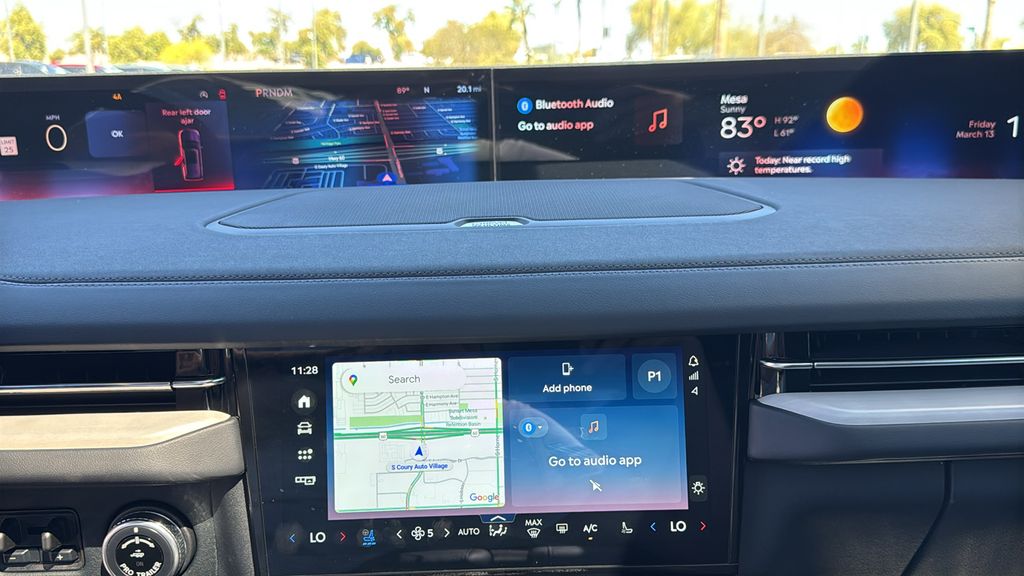 This Lincoln Navigator L is equipped with Equipment Group 202A Reserve II (Auto Heated/Ventilated Premium Leather Captain's Chairs, BlueCruise Equipped (4-Years Included), Lincoln App, Lincoln Digital Experience, Radio: Revel Ultima 3D Audio System, SiriusXM with 360L (3 Months Trial), and Wheels: 22" Dark Tarnished Aluminum), Heavy-Duty Trailer Tow Package (26mm Engine Radiator and Trailer Brake Controller), Jet Appearance Package (Black Accent Badge, Black Accent Interior Pack, Black Beltline Molding, Black Painted Roof Rails, Front Bumper Fascia, Lincoln Lit Star, Unique Lincoln Grille Pillar Black Surround, and Wheels: 22" High-Gloss Ebony Aluminum), Lincoln Connectivity Package (4-Years Included), Lincoln Security Package, 28 Speakers, 2nd Row Heated & Ventilated Dual Captain's Chair, 3rd row seats: split-bench, 4-Wheel Disc Brakes, ABS brakes, Adaptive suspension, Air Conditioning, Alloy wheels, AM/FM radio: SiriusXM with 360L, Apple CarPlay/Android Auto, Audio memory, Auto High-beam Headlights, Auto Start-Stop Technology, Auto tilt-away steering wheel, Auto-dimming door mirrors, Auto-dimming Rear-View mirror, Auto-leveling suspension, Automatic temperature control, Brake assist, Bumpers: body-color, Compass, Delay-off headlights, Driver door bin, Driver vanity mirror, Driver's Seat Mounted Armrest, Dual front impact airbags, Dual front side impact airbags, Electronic Stability Control, Emergency communication system: 911 Assist, Exterior Parking Camera Rear, Four wheel independent suspension, Front anti-roll bar, Front Bucket Seats, Front dual zone A/C, Front reading lights, Fully automatic headlights, Garage door transmitter, Heated door mirrors, Heated front seats, Heated rear seats, Heated steering wheel, HVAC memory, Illuminated entry, Leather steering wheel, Low tire pressure warning, Memory seat, Navigation system: Connected Navigation (1-year trial), Occupant sensing airbag, Outside temperature display, Overhead airbag, Overhead console, Panic alarm, Passenger door bin, Passenger seat mounted armrest, Passenger vanity mirror, Power adjustable rear head restraints, Power door mirrors, Power driver seat, Power moonroof: Panoramic Vista Roof, Power passenger seat, Power steering, Power windows, Radio data system, Rain sensing wipers, Rear air conditioning, Rear anti-roll bar, Rear audio controls, Rear reading lights, Rear window defroster, Rear window wiper, Reclining 3rd row seat, Remote keyless entry, Security system, SiriusXM with 360L (4-Years Plan), Speed control, Speed-sensing steering, Speed-Sensitive Wipers, Split folding rear seat, Spoiler, Steering wheel memory, Steering wheel mounted audio controls, Tachometer, Telescoping steering wheel, Tilt steering wheel, Traction control, Trip computer, Turn signal indicator mirrors, Variably intermittent wipers, and Ventilated front seats.