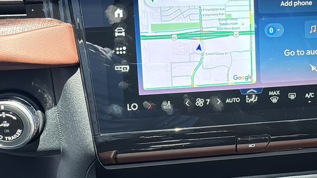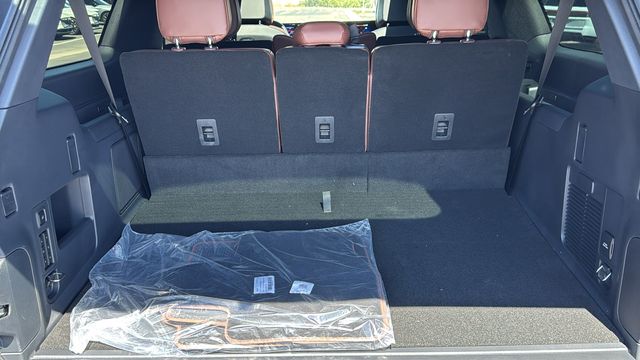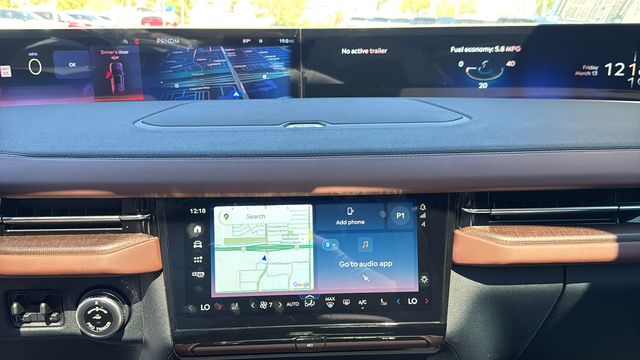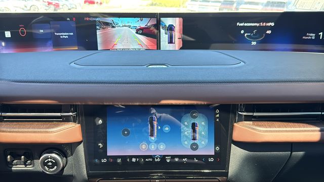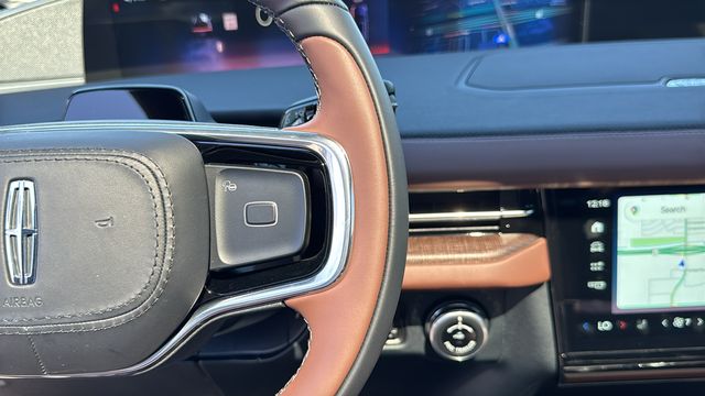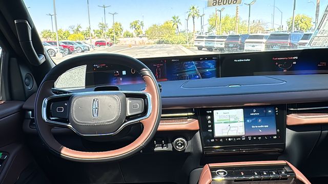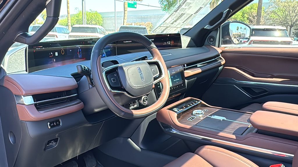 This Lincoln Navigator L is equipped with Equipment Group 202A Reserve II (Auto Heated/Ventilated Premium Leather Captain's Chairs, BlueCruise Equipped (4-Years Included), Lincoln App, Lincoln Digital Experience, Radio: Revel Ultima 3D Audio System, SiriusXM with 360L (3 Months Trial), and Wheels: 22" Dark Tarnished Aluminum), Heavy-Duty Trailer Tow Package (26mm Engine Radiator and Trailer Brake Controller), Lincoln Connectivity Package (4-Years Included), Lincoln Security Package, 28 Speakers, 3rd row seats: split-bench, 4-Wheel Disc Brakes, ABS brakes, Adaptive suspension, Air Conditioning, Alloy wheels, AM/FM radio: SiriusXM with 360L, Apple CarPlay/Android Auto, Audio memory, Auto High-beam Headlights, Auto Start-Stop Technology, Auto tilt-away steering wheel, Auto-dimming door mirrors, Auto-dimming Rear-View mirror, Auto-leveling suspension, Automatic temperature control, Brake assist, Bumpers: body-color, Compass, Delay-off headlights, Driver door bin, Driver vanity mirror, Driver's Seat Mounted Armrest, Dual front impact airbags, Dual front side impact airbags, Electronic Stability Control, Emergency communication system: 911 Assist, Exterior Parking Camera Rear, Four wheel independent suspension, Front anti-roll bar, Front Bucket Seats, Front dual zone A/C, Front reading lights, Fully automatic headlights, Garage door transmitter, Heated door mirrors, Heated front seats, Heated rear seats, Heated steering wheel, HVAC memory, Illuminated entry, Leather steering wheel, Low tire pressure warning, Memory seat, Navigation system: Connected Navigation (1-year trial), Occupant sensing airbag, Outside temperature display, Overhead airbag, Overhead console, Panic alarm, Passenger door bin, Passenger seat mounted armrest, Passenger vanity mirror, Power adjustable rear head restraints, Power door mirrors, Power driver seat, Power moonroof: Panoramic Vista Roof, Power passenger seat, Power steering, Power windows, Radio data system, Rain sensing wipers, Rear air conditioning, Rear anti-roll bar, Rear audio controls, Rear reading lights, Rear window defroster, Rear window wiper, Reclining 3rd row seat, Remote keyless entry, Security system, Speed control, Speed-sensing steering, Speed-Sensitive Wipers, Split folding rear seat, Spoiler, Steering wheel memory, Steering wheel mounted audio controls, Tachometer, Telescoping steering wheel, Tilt steering wheel, Traction control, Trip computer, Turn signal indicator mirrors, Variably intermittent wipers, Ventilated front seats, and Wheels: 24" Bright Machined Aluminum.