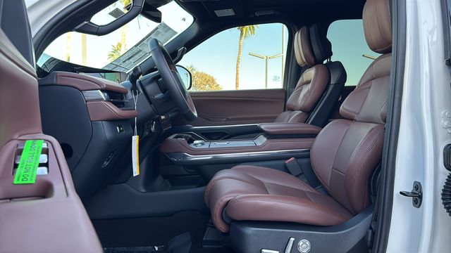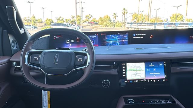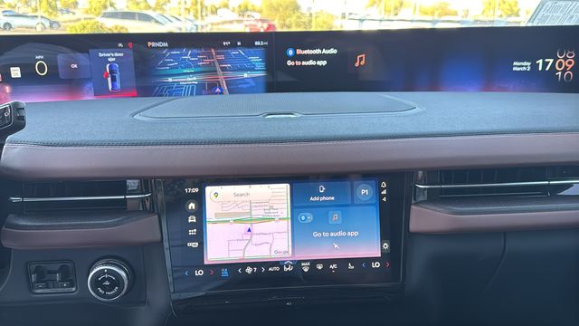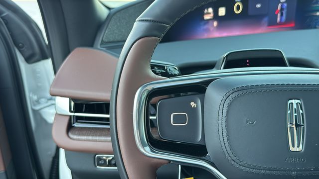 This Lincoln Navigator L is equipped with Equipment Group 202A Reserve II (Auto Heated/Ventilated Premium Leather Captain's Chairs, BlueCruise Equipped (4-Years Included), Lincoln App, Lincoln Digital Experience, Radio: Revel Ultima 3D Audio System, SiriusXM with 360L (3 Months Trial), and Wheels: 22" Dark Tarnished Aluminum), Heavy-Duty Trailer Tow Package (26mm Engine Radiator and Trailer Brake Controller), Lincoln Connectivity Package (4-Years Included), Lincoln Security Package, 28 Speakers, 2nd Row Heated & Ventilated Dual Captain's Chair, 3rd row seats: split-bench, 4-Wheel Disc Brakes, ABS brakes, Adaptive suspension, Air Conditioning, Alloy wheels, AM/FM radio: SiriusXM with 360L, Apple CarPlay/Android Auto, Audio memory, Auto High-beam Headlights, Auto Start-Stop Technology, Auto tilt-away steering wheel, Auto-dimming door mirrors, Auto-dimming Rear-View mirror, Auto-leveling suspension, Automatic temperature control, Brake assist, Bumpers: body-color, Compass, Delay-off headlights, Driver door bin, Driver vanity mirror, Driver's Seat Mounted Armrest, Dual front impact airbags, Dual front side impact airbags, Electronic Stability Control, Emergency communication system: 911 Assist, Exterior Parking Camera Rear, Four wheel independent suspension, Front anti-roll bar, Front Bucket Seats, Front dual zone A/C, Front reading lights, Fully automatic headlights, Garage door transmitter, Heated door mirrors, Heated front seats, Heated rear seats, Heated steering wheel, HVAC memory, Illuminated entry, Leather steering wheel, Low tire pressure warning, Memory seat, Navigation system: Connected Navigation (1-year trial), Occupant sensing airbag, Outside temperature display, Overhead airbag, Overhead console, Panic alarm, Passenger door bin, Passenger seat mounted armrest, Passenger vanity mirror, Power adjustable rear head restraints, Power door mirrors, Power driver seat, Power moonroof: Panoramic Vista Roof, Power passenger seat, Power steering, Power windows, Radio data system, Rain sensing wipers, Rear air conditioning, Rear anti-roll bar, Rear audio controls, Rear reading lights, Rear window defroster, Rear window wiper, Reclining 3rd row seat, Remote keyless entry, Security system, Speed control, Speed-sensing steering, Speed-Sensitive Wipers, Split folding rear seat, Spoiler, Steering wheel memory, Steering wheel mounted audio controls, Tachometer, Telescoping steering wheel, Tilt steering wheel, Traction control, Trip computer, Turn signal indicator mirrors, Variably intermittent wipers, Ventilated front seats, and Wheels: 24" Bright Machined Aluminum.