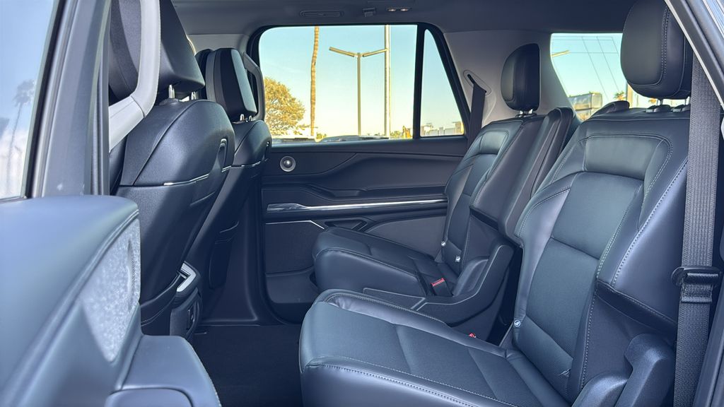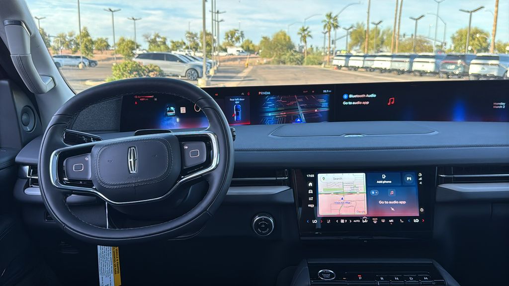 This Lincoln Navigator L is equipped with Equipment Group 202A Reserve II (Auto Heated/Ventilated Premium Leather Captain's Chairs, BlueCruise Equipped (4-Years Included), Lincoln App, Lincoln Digital Experience, Radio: Revel Ultima 3D Audio System, SiriusXM with 360L (3 Months Trial), and Wheels: 22" Dark Tarnished Aluminum), Lincoln Connectivity Package (4-Years Included), Lincoln Security Package, 28 Speakers, 3rd row seats: split-bench, 4-Wheel Disc Brakes, ABS brakes, Adaptive suspension, Air Conditioning, Alloy wheels, AM/FM radio: SiriusXM with 360L, Apple CarPlay/Android Auto, Audio memory, Auto High-beam Headlights, Auto Start-Stop Technology, Auto tilt-away steering wheel, Auto-dimming door mirrors, Auto-dimming Rear-View mirror, Auto-leveling suspension, Automatic temperature control, Brake assist, Bumpers: body-color, Compass, Delay-off headlights, Driver door bin, Driver vanity mirror, Driver's Seat Mounted Armrest, Dual front impact airbags, Dual front side impact airbags, Electronic Stability Control, Emergency communication system: 911 Assist, Exterior Parking Camera Rear, Four wheel independent suspension, Front anti-roll bar, Front Bucket Seats, Front dual zone A/C, Front reading lights, Fully automatic headlights, Garage door transmitter, Heated door mirrors, Heated front seats, Heated rear seats, Heated steering wheel, HVAC memory, Illuminated entry, Leather steering wheel, Low tire pressure warning, Memory seat, Navigation system: Connected Navigation (1-year trial), Occupant sensing airbag, Outside temperature display, Overhead airbag, Overhead console, Panic alarm, Passenger door bin, Passenger seat mounted armrest, Passenger vanity mirror, Power adjustable rear head restraints, Power door mirrors, Power driver seat, Power moonroof: Panoramic Vista Roof, Power passenger seat, Power steering, Power windows, Radio data system, Rain sensing wipers, Rear air conditioning, Rear anti-roll bar, Rear audio controls, Rear reading lights, Rear window defroster, Rear window wiper, Reclining 3rd row seat, Remote keyless entry, Security system, Speed control, Speed-sensing steering, Speed-Sensitive Wipers, Split folding rear seat, Spoiler, Steering wheel memory, Steering wheel mounted audio controls, Tachometer, Telescoping steering wheel, Tilt steering wheel, Traction control, Trip computer, Turn signal indicator mirrors, Variably intermittent wipers, Ventilated front seats, and Wheels: 24" Bright Machined Aluminum.