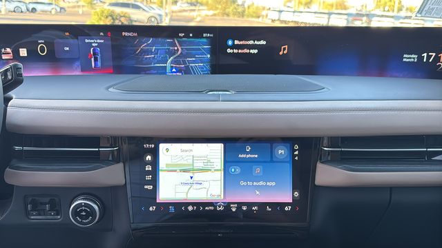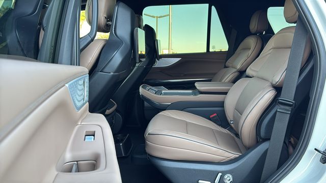 This Lincoln Navigator is equipped with Black Label Special Edition Package (Black Accent Badge, Black Beltline Molding, Black Painted Roof, Black Painted Roof Rails, Front Bumper Fascia, Unique Lincoln Grille Pillar Black Surround, and Wheels: 24" High-Gloss Ebony Aluminum), Equipment Group 800A Black Label (BlueCruise Equipped (4-Years Included), Lincoln App, Lincoln Digital Experience, Radio: Revel Ultima 3D Audio System, SiriusXM with 360L (3 Months Trial), and Wheels: 22" High-Gloss Ebony Aluminum), Lincoln Connectivity Package (4-Years Included), Lincoln Security Package, 4WD, Enlighten Opul Lt, 28 Speakers, 3rd row seats: split-bench, 4-Wheel Disc Brakes, ABS brakes, Adaptive suspension, Adjustable pedals, Air Conditioning, All-Weather Floor Liners with Front and Rear Carpet Floor Mats, Alloy wheels, AM/FM radio: SiriusXM with 360L, Apple CarPlay/Android Auto, Audio memory, Auto High-beam Headlights, Auto Start-Stop Technology, Auto tilt-away steering wheel, Auto-dimming door mirrors, Auto-dimming Rear-View mirror, Auto-leveling suspension, Automatic temperature control, Brake assist, Bumpers: body-color, Compass, Delay-off headlights, Driver door bin, Driver vanity mirror, Driver's Seat Mounted Armrest, Dual front impact airbags, Dual front side impact airbags, Electronic Stability Control, Emergency communication system: 911 Assist, Enlighten Theme, Exterior Parking Camera Rear, Four wheel independent suspension, Front anti-roll bar, Front Bucket Seats, Front dual zone A/C, Front reading lights, Fully automatic headlights, Garage door transmitter, Head restraints memory, Heated door mirrors, Heated front seats, Heated rear seats, Heated steering wheel, HVAC memory, Illuminated entry, Leather steering wheel, Lincoln Play (rear Seat Entertainment System), Low tire pressure warning, Memory seat, Navigation system: Connected Navigation (1-year trial), Occupant sensing airbag, Outside temperature display, Overhead airbag, Overhead console, Panic alarm, Passenger door bin, Passenger seat mounted armrest, Passenger vanity mirror, Pedal memory, Power adjustable front head restraints, Power adjustable rear head restraints, Power door mirrors, Power driver seat, Power moonroof: Panoramic Vista Roof, Power passenger seat, Power steering, Power windows, Radio data system, Rain sensing wipers, Rear air conditioning, Rear anti-roll bar, Rear audio controls, Rear reading lights, Rear seat center armrest, Rear window defroster, Rear window wiper, Reclining 3rd row seat, Remote keyless entry, Security system, Speed control, Speed-sensing steering, Speed-Sensitive Wipers, Split folding rear seat, Spoiler, Steering wheel memory, Steering wheel mounted audio controls, Tachometer, Telescoping steering wheel, Tilt steering wheel, Traction control, Trip computer, Turn signal indicator mirrors, Variably intermittent wipers, Ventilated front seats, and Ventilated rear seats. Recent Arrival!