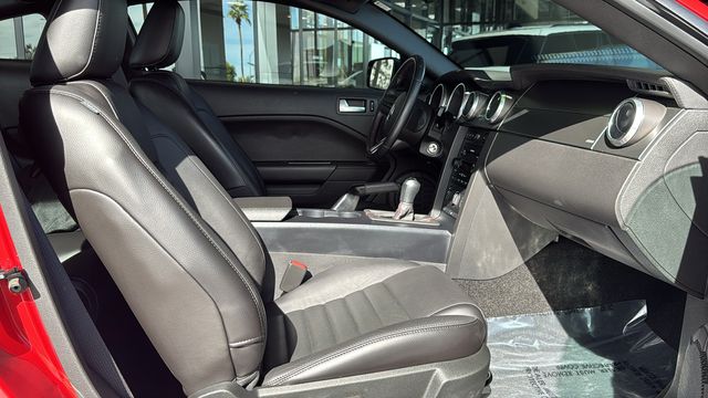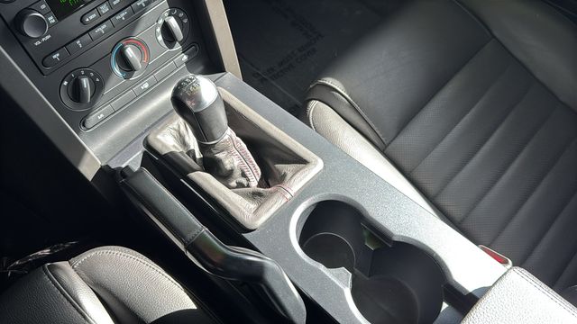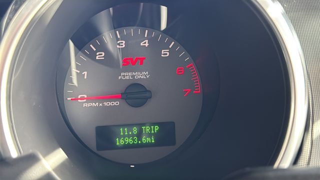 This Ford Mustang is equipped with 5.4L V8 DOHC Supercharged, 18" x 9.5" Bright Machined Aluminum Wheels, 4-Wheel Disc Brakes, 8 Speakers, ABS brakes, Air Conditioning, Alloy wheels, AM/FM radio, Bumpers: body-color, CD player, Driver door bin, Driver vanity mirror, Dual front impact airbags, Dual front side impact airbags, Front anti-roll bar, Front Bucket Seats, Front Center Armrest, Front fog lights, Front reading lights, Front wheel independent suspension, Illuminated entry, Leather Shift Knob, Leather Sport Bucket Seats, Low tire pressure warning, Occupant sensing airbag, Panic alarm, Passenger door bin, Passenger vanity mirror, Power door mirrors, Power driver seat, Power steering, Power windows, Premium audio system: Shaker 500, Radio data system, Rear anti-roll bar, Rear window defroster, Remote keyless entry, Security system, Shaker 500 AM/FM Stereo w/CDx6/MP3, Speed control, Split folding rear seat, Spoiler, Tachometer, Tilt steering wheel, Traction control, Trip computer, and Variably intermittent wipers. Recent Arrival!