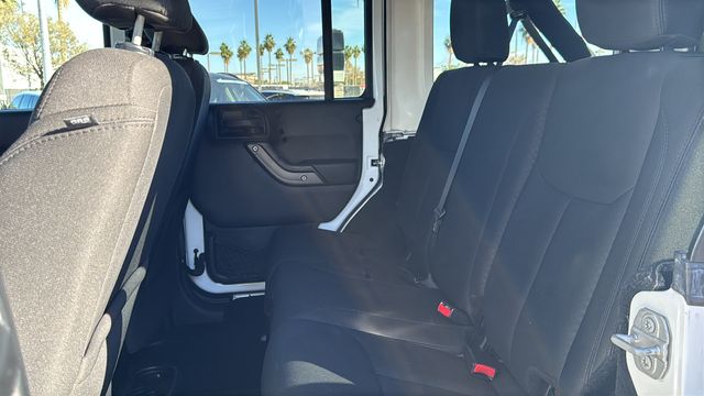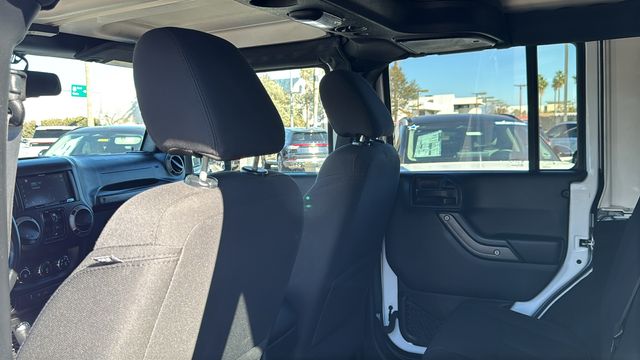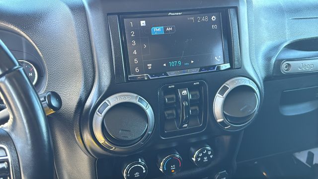 This Jeep Wrangler is equipped with 16" x 7.0" Luxury Styled Steel Wheels, 3.21 Rear Axle Ratio, 4-Wheel Disc Brakes, 8 Speakers, ABS brakes, Air Conditioning, AM/FM radio, Audio Jack Input for Mobile Devices, Brake assist, CD player, Cloth Seats w/Adjustable Head Restraints, Compass, Driver door bin, Driver vanity mirror, Dual front impact airbags, Electronic Stability Control, Front anti-roll bar, Front Bucket Seats, Front Center Armrest w/Storage, Front fog lights, Integrated roll-over protection, Low tire pressure warning, Normal Duty Suspension, Occupant sensing airbag, Outside temperature display, Passenger door bin, Passenger vanity mirror, Power steering, Radio: 130, Rear anti-roll bar, Speed control, Split folding rear seat, Steering wheel mounted audio controls, Sunrider Soft Top, Tachometer, Tilt steering wheel, Traction control, Trip computer, and Variably intermittent wipers. Odometer is 20437 miles below market average!