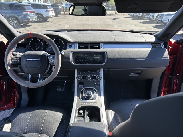 This Land Rover Range Rover Evoque is equipped with 11 Speakers, 12-Way Electric Front Bucket Seats, 3.75 Axle Ratio, 4-Wheel Disc Brakes, ABS brakes, Air Conditioning, Alloy wheels, AM/FM radio, Auto-dimming Rear-View mirror, Automatic temperature control, Brake assist, Bumpers: body-color, CD player, Convertible roof lining, Delay-off headlights, Driver door bin, Driver vanity mirror, Dual front impact airbags, Dual front side impact airbags, Electronic Stability Control, Emergency communication system: InControl Protect, Exterior Parking Camera Rear, Four wheel independent suspension, Front anti-roll bar, Front Bucket Seats, Front Center Armrest, Front dual zone A/C, Front reading lights, Fully automatic headlights, Glass rear window, Grained Leather w/Perforated Mid-Section Seat Trim, Heated door mirrors, Illuminated entry, Integrated roll-over protection, Knee airbag, Leather steering wheel, Low tire pressure warning, Memory seat, Navigation System, Occupant sensing airbag, Outside temperature display, Panic alarm, Passenger door bin, Passenger vanity mirror, Power convertible roof, Power door mirrors, Power driver seat, Power passenger seat, Power steering, Power windows, Premium audio system: Meridian, Radio data system, Radio: InControl Touch Pro, Rain sensing wipers, Rear anti-roll bar, Rear fog lights, Rear window defroster, Remote keyless entry, Security system, Speed control, Speed-sensing steering, Speed-Sensitive Wipers, Spoiler, Steering wheel mounted audio controls, Tachometer, Telescoping steering wheel, Tilt steering wheel, Traction control, Trip computer, Turn signal indicator mirrors, Variably intermittent wipers, and Wheels: 18" 7-Spoke Alloy w/Sparkle Finish. Recent Arrival!