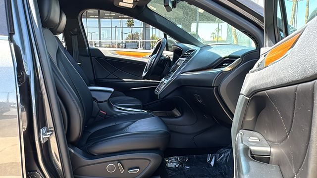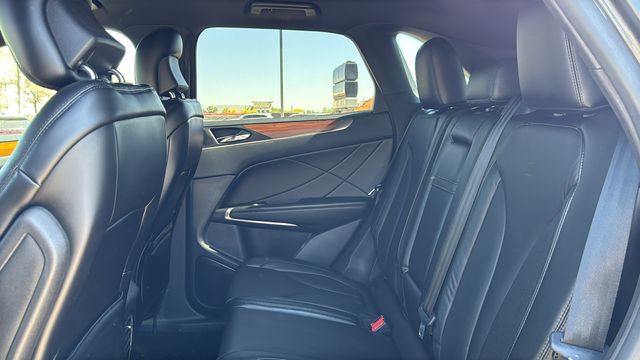 This Lincoln MKC is equipped with Equipment Group 200A Select, Select Plus Package (Blind Spot Info System w/Cross-Traffic Alert), 10 Speakers, 18" Painted Aluminum Wheels, 3.36 Axle Ratio, 4-Wheel Disc Brakes, ABS brakes, Air Conditioning, Alloy wheels, AM/FM radio: SiriusXM, Auto tilt-away steering wheel, Auto-dimming door mirrors, Auto-dimming Rear-View mirror, Automatic temperature control, Brake assist, Bumpers: body-color, CD player, Compass, Delay-off headlights, Driver door bin, Driver vanity mirror, Dual front impact airbags, Dual front side impact airbags, Electronic Stability Control, Emergency communication system: SYNC 3 911 Assist, Exterior Parking Camera Rear, Four wheel independent suspension, Front anti-roll bar, Front Bucket Seats, Front Center Armrest, Front dual zone A/C, Front License Plate Bracket, Front reading lights, Fully automatic headlights, Garage door transmitter: HomeLink, Genuine wood dashboard insert, Genuine wood door panel insert, Heated door mirrors, Heated front seats, High-Intensity Discharge Headlights, Illuminated entry, Knee airbag, Low tire pressure warning, Memory seat, Navigation System, Occupant sensing airbag, Outside temperature display, Overhead airbag, Overhead console, Panic alarm, Passenger door bin, Passenger vanity mirror, Power door mirrors, Power driver seat, Power Liftgate, Power passenger seat, Power steering, Power windows, Premium Heated Leather-Trimmed Bucket Seats, Radio data system, Radio: Audio System w/CD/MP3, Rear anti-roll bar, Rear Parking Sensors, Rear reading lights, Rear seat center armrest, Rear window defroster, Rear window wiper, Remote keyless entry, Roof rack: rails only, Security system, SiriusXM Satellite Radio, Speed control, Speed-sensing steering, Speed-Sensitive Wipers, Split folding rear seat, Spoiler, Steering wheel memory, Steering wheel mounted audio controls, SYNC 3 Communications & Entertainment System, Tachometer, Telescoping steering wheel, Tilt steering wheel, Traction control, Trip computer, Turn signal indicator mirrors, and Variably intermittent wipers. Odometer is 14021 miles below market average!