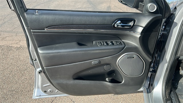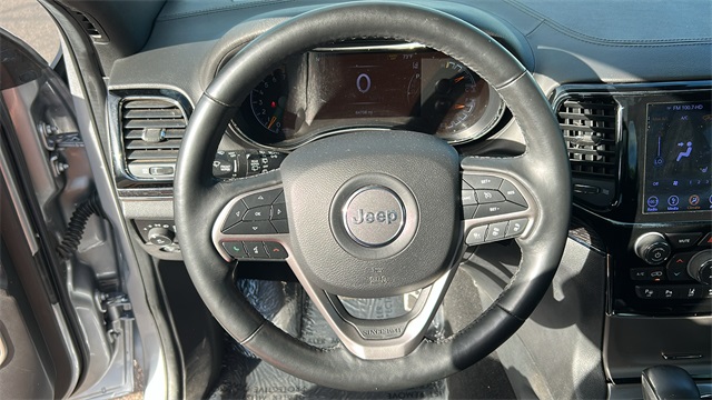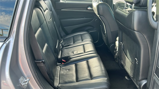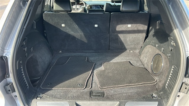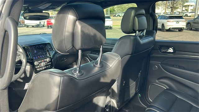 This Jeep Grand Cherokee is equipped with Quick Order Package 22S High Altitude (7 & 4 Pin Wiring Harness, Anodized/Light Black Chrome Interior Accents, Black Roof Molding, Body Color Door Handles, Body Color Sill Extension, Class IV Receiver Hitch, Dark Day Light Opening Moldings, Dark Headlamp Bezel Finish, Dual Dark Chrome Exhaust Tip, Granite Crystal/Black Grille, Heavy-Duty Engine Cooling, and Leather Wrapped Steering Wheel), Trailer Tow Group IV, 4WD, 10 Speakers, 19 Speakers High Performance Audio, 3.09 Rear Axle Ratio, 3.45 Rear Axle Ratio, 4-Wheel Disc Brakes, 8.4" Touchscreen Display, 825 Watt Amplifier, ABS brakes, Active Noise Control System, Air Conditioning, Alloy wheels, AM/FM radio: SiriusXM, Anti-whiplash front head restraints, Apple CarPlay/Android Auto, Audio memory, Auto High-beam Headlights, Auto-dimming door mirrors, Auto-dimming Rear-View mirror, Auto-leveling suspension, Automatic temperature control, Brake assist, Bumpers: body-color, Compass, Delay-off headlights, Driver door bin, Driver vanity mirror, Dual Bright Exhaust Tips, Dual front impact airbags, Dual front side impact airbags, Electronic Stability Control, Emergency communication system: SiriusXM Guardian, Four wheel independent suspension, Front anti-roll bar, Front Bucket Seats, Front Center Armrest w/Storage, Front dual zone A/C, Front fog lights, Front License Plate Bracket, Front reading lights, Fully automatic headlights, Garage door transmitter, Genuine wood dashboard insert, Heated door mirrors, Heated front seats, Heated rear seats, Heated steering wheel, High intensity discharge headlights: Bi-Xenon, Illuminated entry, Knee airbag, Leather Shift Knob, Leather steering wheel, Leather Trim Seats w/Edge Welting, Low tire pressure warning, Memory seat, Navigation System, Normal Duty Suspension, Occupant sensing airbag, Outside temperature display, Overhead airbag, Overhead console, Panic alarm, ParkView Rear Back-Up Camera, Passenger door bin, Passenger vanity mirror, Power door mirrors, Power driver seat, Power Liftgate, Power moonroof: Dual-Pane Panoramic, Power passenger seat, Power steering, Power windows, Radio data system, Radio: Uconnect 4C Nav w/8.4" Display, Rain sensing wipers, Rain Sensitive Windshield Wipers, Rear anti-roll bar, Rear reading lights, Rear seat center armrest, Rear window defroster, Rear window wiper, Remote keyless entry, Roof rack: rails only, Security system, Speed control, Speed-sensing steering, Speed-Sensitive Wipers, Split folding rear seat, Spoiler, Steering wheel mounted audio controls, Tachometer, Telescoping steering wheel, Tilt steering wheel, Traction control, Trip computer, Turn signal indicator mirrors, Variably intermittent wipers, Ventilated front seats, Voltmeter, and Wheels: 20" x 8.0" Polished/Tech Gray Aluminum. Odometer is 14621 miles below market average!