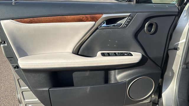 This Lexus RX is equipped with Parchment Artificial Leather, 3.33 Axle Ratio, 3rd row seats: split-bench, 4-Wheel Disc Brakes, 9 Speakers, ABS brakes, Air Conditioning, Alloy wheels, AM/FM radio: SiriusXM, Anti-whiplash front head restraints, Apple CarPlay/Android Auto, Auto High-beam Headlights, Auto-dimming door mirrors, Auto-dimming Rear-View mirror, Automatic temperature control, Brake assist, Bumpers: body-color, CD player, Compass, Delay-off headlights, Driver door bin, Driver vanity mirror, Dual front impact airbags, Dual front side impact airbags, Electronic Stability Control, Emergency communication system: Lexus Enform Safety Connect, Exterior Parking Camera Rear, Four wheel independent suspension, Front anti-roll bar, Front Bucket Seats, Front Center Armrest, Front dual zone A/C, Front reading lights, Fully automatic headlights, Garage door transmitter: HomeLink, Heated door mirrors, Illuminated entry, Knee airbag, Leather Shift Knob, Leather steering wheel, Low tire pressure warning, NuLuxe Seat Trim, Occupant sensing airbag, Outside temperature display, Overhead airbag, Overhead console, Panic alarm, Passenger door bin, Passenger vanity mirror, Power door mirrors, Power driver seat, Power Liftgate, Power passenger seat, Power steering, Power windows, Radio data system, Radio: AM/FM/CD Lexus Display Audio, Rain sensing wipers, Rear air conditioning, Rear anti-roll bar, Rear reading lights, Rear seat center armrest, Rear side impact airbag, Rear window defroster, Rear window wiper, Reclining 3rd row seat, Remote keyless entry, Roof rack: rails only, Security system, Speed control, Speed-sensing steering, Split folding rear seat, Spoiler, Steering wheel mounted audio controls, Tachometer, Telescoping steering wheel, Tilt steering wheel, Traction control, Trip computer, Turn signal indicator mirrors, Variably intermittent wipers, and Wheels: 18" Split-5-Spoke Alloy. Odometer is 6335 miles below market average!