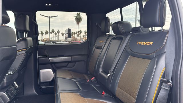 This Ford F-150 is equipped with Equipment Group 402A High (12" Productivity Screen in Instrument Cluster, 2nd Row Heated Seats, Advanced Security Pack, Ambient Lighting, Body-Color Door Handles w/Body-Color Bezel, Carpeted Floor Mats w/Tremor Logo, Dual Zone Electronic Automatic Temperature Control, Electronic Locking w/3.73 Axle Ratio, Extended Range 36 Gallon Fuel Tank, Heated Steering Wheel, Intelligent Access w/Push Button Start, Leather-Wrapped Steering Wheel, LED Projector w/Dynamic Bending Headlamps, LED Sideview Mirror Spotlights, Onboard 400W Outlet, Power Glass Sideview Mirr w/Body-Color Skull Caps, Power Tilt/Telescoping Steering Column w/Memory, Power-Adjustable Pedals, Power-Sliding Rear Window, Radio: B&O Sound System by Bang & Olufsen, Rain-Sensing Wipers, Rear Under-Seat Storage, Remote Start System w/Remote Tailgate Release, SecuriCode Drivers Side Keyless-Entry Keypad, SYNC 4 w/Enhanced Voice Recognition, Trail Control, Unique Tremor Leather-Trimmed Bucket Seats, Universal Garage Door Opener, Wireless Charging Pad, and Zone Lighting), Ford Co-Pilot360 Assist 2.0 (DISC) (Connected Built-In Navigation (DISC), Evasive Steering Assist, Intelligent Adaptive Cruise Control w/Stop & Go, Intersection Assist, and Speed Sign Recognition), GVWR: 7,050 lbs Payload Package, Tow Technology Package (360 Degree Camera, Integrated Trailer Brake Controller, and Pro Trailer Backup Assist), 4WD, 4-Wheel Disc Brakes, 6 Speakers, ABS brakes, Air Conditioning, Alloy wheels, AM/FM radio: SiriusXM with 360L, Auto High Beam, Auto High-beam Headlights, Auto Start-Stop Removal, Brake assist, Bumpers: body-color, Class IV Trailer Hitch Receiver, Compass, Delay-off headlights, Driver door bin, Dual front impact airbags, Dual front side impact airbags, Electronic Stability Control, Emergency communication system: SYNC 4 911 Assist, Exterior Parking Camera Rear, Front anti-roll bar, Front Bucket Seats, Front Center Armrest, Front fog lights, Front reading lights, Front wheel independent suspension, Fully automatic headlights, Heated door mirrors, Illuminated entry, Lane-Keeping System, Low tire pressure warning, Navigation system: Connected Navigation, Occupant sensing airbag, Outside temperature display, Overhead airbag, Overhead console, Panic alarm, Passenger door bin, Passenger vanity mirror, Power door mirrors, Power steering, Power windows, Pre-Collision Assist w/Automatic Emergency Braking, Radio data system, Radio: AM/FM SiriusXM w/360L, Radio: B&O Unleashed Sound System by Bang & Olufsen, Rear reading lights, Rear step bumper, Rear window defroster, Rear-View Camera, Remote keyless entry, Reverse Sensing System, Security system, Speed control, Speed-sensing steering, Split folding rear seat, Steering wheel mounted audio controls, Tachometer, Telescoping steering wheel, Tilt steering wheel, Traction control, Trip computer, Unique Sport Cloth 40/Console/40 Front Seat, Variably intermittent wipers, Voltmeter, and Wheels: 18" Alloy w/Dark Matte Finish. Recent Arrival! Odometer is 7421 miles below market average!