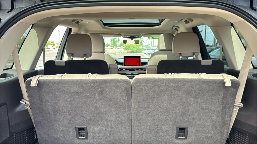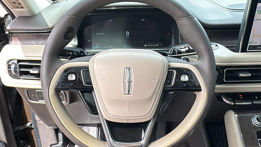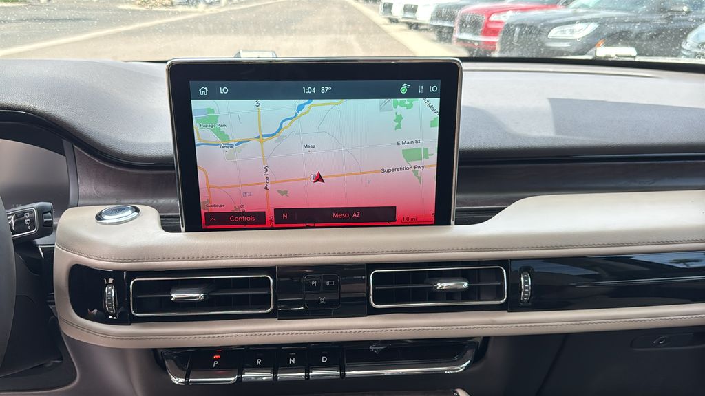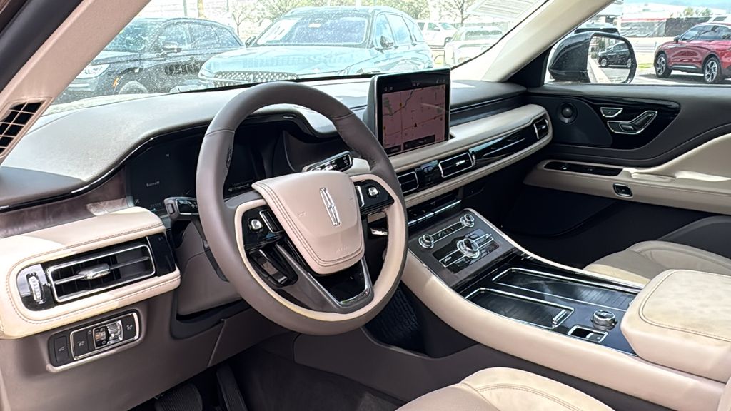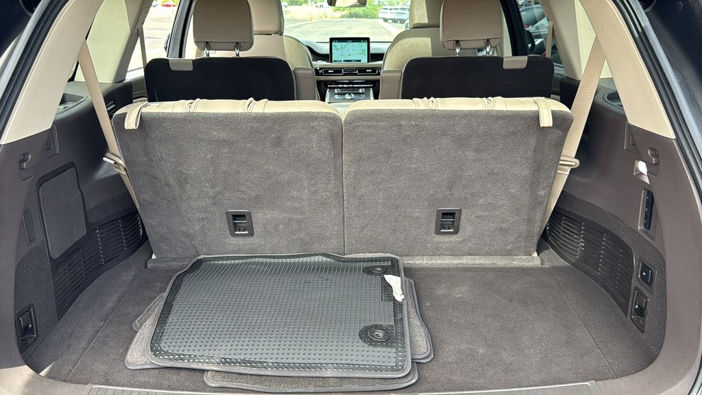 This Lincoln Aviator is equipped with Class IV Trailer Tow Package (4-Pin & 7-Pin Connectors, Blind Spot Information System, Class IV Hitch & Wiring, Smart Trailer Tow, and Trailer Sway Control), Elements Package Plus (Auto Air Refresh, Auto Heated/Ventilated Driver & Passenger Seats, Heated Steering Wheel, Heated VisioBlade Wipers, and Heated/Ventilated 2nd Row Outboard Seats), Equipment Group 201A (Head-Up Display and Phone As A Key), Lincoln Co-Pilot360 1.5 Plus (Active Park Assist 2.0, Evasive Steering Assist, Intelligent Adaptive Cruise Control, and Reverse Brake Assist), Lincoln Signature Certification Certified, 14 Speakers, 3.58 Axle Ratio, 3rd row seats: split-bench, 4-Wheel Disc Brakes, ABS brakes, Adaptive suspension, Air Conditioning, Alloy wheels, AM/FM radio: SiriusXM, Audio memory, Auto High-beam Headlights, Auto-dimming door mirrors, Auto-dimming Rear-View mirror, Automatic temperature control, Brake assist, Bumpers: body-color, Compass, Delay-off headlights, Driver door bin, Driver vanity mirror, Dual front impact airbags, Dual front side impact airbags, Electronic Stability Control, Emergency communication system, Four wheel independent suspension, Front anti-roll bar, Front Bucket Seats, Front Center Armrest, Front dual zone A/C, Front reading lights, Fully automatic headlights, Garage door transmitter, Heated door mirrors, Heated front seats, HVAC memory, Illuminated entry, Knee airbag, Leather steering wheel, Low tire pressure warning, Memory seat, Navigation System, Occupant sensing airbag, Outside temperature display, Overhead airbag, Overhead console, Panic alarm, Passenger door bin, Passenger vanity mirror, Power door mirrors, Power driver seat, Power Liftgate, Power moonroof: Panoramic Vista Roof, Power passenger seat, Power steering, Power windows, Premium Lthr Heated/Ventilated Fnt Captain's Chairs, Radio data system, Radio: Revel AM/FM Audio System w/14 Speakers, Rain sensing wipers, Rear air conditioning, Rear anti-roll bar, Rear audio controls, Rear dual zone A/C, Rear reading lights, Rear window defroster, Rear window wiper, Remote keyless entry, Security system, SiriusXM Radio, Speed control, Speed-Sensitive Wipers, Split folding rear seat, Spoiler, Steering wheel memory, Steering wheel mounted A/C controls, Steering wheel mounted audio controls, SYNC 3 Communication & Entertainment System, Tachometer, Telescoping steering wheel, Tilt steering wheel, Traction control, Trip computer, Turn signal indicator mirrors, Variably intermittent wipers, Wheels: 20" Bright-Machined Aluminum, and Wheels: 22" Bright-Machined Aluminum.