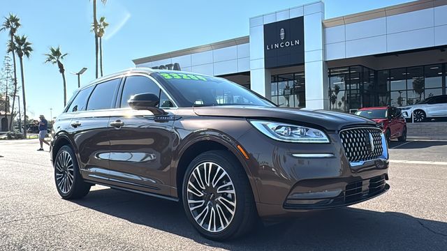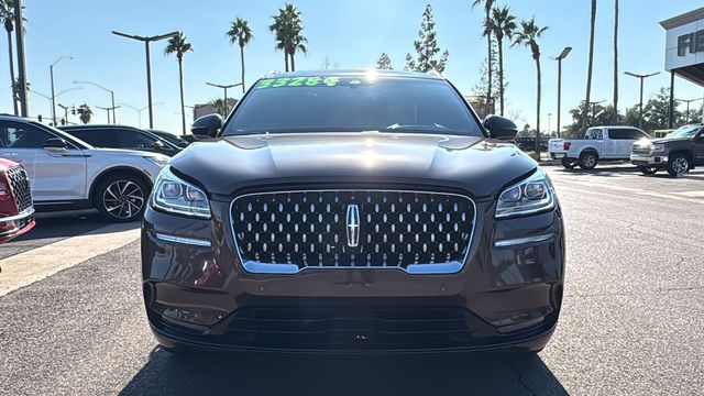 This Lincoln Corsair is equipped with Elements Technology Bundle (Additional Rear USB Ports (Types A & C), Front LED Fog Lamps, Hands-Free Liftgate, Heated Rear Seat, Heated Steering Wheel, Jeweled LED Headlamps, Perfect Position Seats, Phone As A Key, Rain Sensing Wipers, Windshield Wiper De-Icer, and Wireless Charging Pad), Equipment Group 300A, Lincoln Co-Pilot360 1.5 Plus (360-Degree Camera w/Front & Rear Camera Washer, Active Park Assist 2.0, Evasive Steering Assist (ESA), Front/Side/Rear Parking Sensors, Intelligent Adaptive Cruise Control, and Reverse Brake Assist), Luxury Package (Heads-Up Display and Radio: Revel Audio System w/HD Radio & MP3), Lincoln Certified Pre-Owned Certified, 2.5L i-VCT, 10 Speakers, 19" Bright Machined Aluminum Wheels, 2.91 Axle Ratio, 4-Wheel Disc Brakes, ABS brakes, Adaptive suspension, Air Conditioning, Alloy wheels, AM/FM radio: SiriusXM, Auto High-beam Headlights, Auto tilt-away steering wheel, Auto-dimming door mirrors, Auto-dimming Rear-View mirror, Automatic temperature control, Brake assist, Bumpers: body-color, Compass, Delay-off headlights, Driver door bin, Driver vanity mirror, Dual front impact airbags, Dual front side impact airbags, Electronic Stability Control, Emergency communication system: 911 Assist, Four wheel independent suspension, Front anti-roll bar, Front Bucket Seats, Front Center Armrest, Front dual zone A/C, Front reading lights, Fully automatic headlights, Garage door transmitter, Hands Free Liftgate Delete, Heated door mirrors, Heated front seats, Illuminated entry, Knee airbag, Leather steering wheel, Low tire pressure warning, Memory seat, Navigation System, Occupant sensing airbag, Outside temperature display, Overhead airbag, Overhead console, Panic alarm, Passenger door bin, Passenger vanity mirror, Power door mirrors, Power driver seat, Power Liftgate, Power moonroof: Panoramic Vista Roof, Power passenger seat, Power steering, Power windows, Premium Leather Heated Comfort Seats, Radio data system, Radio: Lincoln Premium Audio System w/MP3, Rear anti-roll bar, Rear Parking Sensors, Rear reading lights, Rear seat center armrest, Rear window defroster, Rear window wiper, Remote keyless entry, Roof rack: rails only, Security system, SiriusXM Radio, Speed control, Speed-sensing steering, Speed-Sensitive Wipers, Split folding rear seat, Spoiler, Steering wheel memory, Steering wheel mounted A/C controls, Steering wheel mounted audio controls, SYNC 3 Communications & Entertainment System, Tachometer, Telescoping steering wheel, Tilt steering wheel, Traction control, Trip computer, Turn signal indicator mirrors, Variably intermittent wipers, and Wheels: 20" Bright Machined Aluminum. Odometer is 4715 miles below market average!