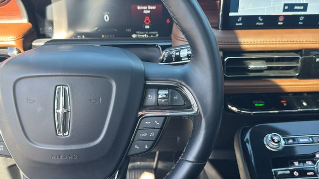 This Lincoln Nautilus is equipped with Equipment Group 200A, Lincoln Co-Pilot360 1.0 Plus Package (360 Degree Camera w/Rear Camera Wash, Active Park Assist 2.0, Adaptive Cruise Control, Distance Indication & Alert, Evasive Steering Assist, and Forward-Side-Rear Parking Sensors), Lincoln Signature Certification Certified, 10 Speakers, 3.80 Axle Ratio, 4-Wheel Disc Brakes, ABS brakes, Air Conditioning, Alexa Built-In, Alloy wheels, AM/FM radio: SiriusXM with 360L, Auto High-beam Headlights, Auto tilt-away steering wheel, Auto-dimming door mirrors, Auto-dimming Rear-View mirror, Automatic temperature control, Brake assist, Bumpers: body-color, Compass, Delay-off headlights, Driver door bin, Driver vanity mirror, Dual front impact airbags, Dual front side impact airbags, Electronic Stability Control, Emergency communication system: 911 Assist, Four wheel independent suspension, Front anti-roll bar, Front Bucket Seats, Front Center Armrest w/Storage, Front dual zone A/C, Front reading lights, Fully automatic headlights, Garage door transmitter: HomeLink, Heated door mirrors, Heated front seats, Heated rear seats, Heated steering wheel, Illuminated entry, Knee airbag, Leather steering wheel, Low tire pressure warning, Memory seat, Navigation System, Occupant sensing airbag, Outside temperature display, Overhead airbag, Overhead console, Panic alarm, Passenger door bin, Passenger vanity mirror, Power door mirrors, Power driver seat, Power Liftgate, Power moonroof: Panoramic Vista Roof, Power passenger seat, Power steering, Power windows, Prem Lthr-Trimmed Heated/Ventilated Captain Seats, Radio data system, Radio: AM/FM/HD Audio System, Rain sensing wipers, Rear anti-roll bar, Rear reading lights, Rear seat center armrest, Rear window defroster, Rear window wiper, Remote keyless entry, Security system, Speed control, Speed-sensing steering, Speed-Sensitive Wipers, Split folding rear seat, Spoiler, Steering wheel memory, Steering wheel mounted A/C controls, Steering wheel mounted audio controls, SYNC 4 w/Enhanced Voice Recognition, Tachometer, Telescoping steering wheel, Tilt steering wheel, Traction control, Trip computer, Turn signal indicator mirrors, Variably intermittent wipers, Ventilated front seats, and Wheels: 18" Premium Painted Bright Machined Alum.