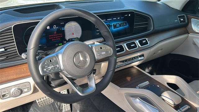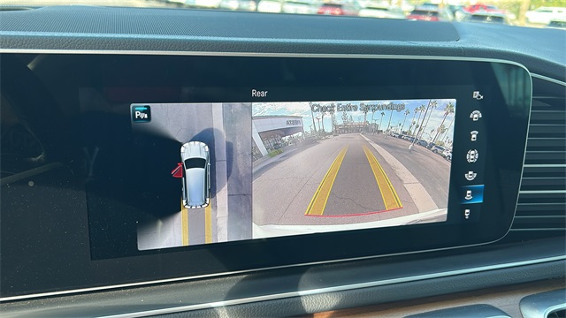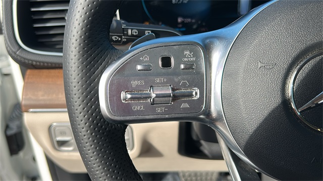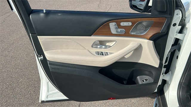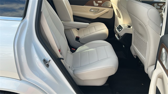 This Mercedes-Benz GLS is equipped with 13 Speakers, 3.27 Axle Ratio, 3rd row seats: split-bench, 4-Wheel Disc Brakes, 7-Seat Configuration, ABS brakes, Active Brake Assist w/Cross-Traffic Function, Adaptive suspension, Air Conditioning, Alloy wheels, AM/FM radio: SiriusXM, Apple CarPlay/Android Auto, Auto High-beam Headlights, Auto tilt-away steering wheel, Auto-dimming door mirrors, Auto-dimming Rear-View mirror, Auto-leveling suspension, Automatic temperature control, Brake assist, Bumpers: body-color, Child-Seat-Sensing Airbag, Compass, Delay-off headlights, Driver door bin, Driver vanity mirror, Dual front impact airbags, Dual front side impact airbags, Electronic Stability Control, Emergency communication system: eCall Emergency System, Four wheel independent suspension, Front anti-roll bar, Front Bucket Seats, Front Center Armrest w/Storage, Front dual zone A/C, Front reading lights, Fully automatic headlights, Garage door transmitter: HomeLink, Genuine wood console insert, Genuine wood dashboard insert, Genuine wood door panel insert, Head restraints memory, Heated and Ventilated Power Front Seats w/Memory, Heated door mirrors, Heated front seats, Illuminated entry, Knee airbag, Low tire pressure warning, MB-Tex Upholstery, Memory seat, Navigation system: MB Navigation, Occupant sensing airbag, Outside temperature display, Overhead airbag, Overhead console, Panic alarm, Passenger door bin, Passenger vanity mirror, Power adjustable front head restraints, Power door mirrors, Power driver seat, Power Liftgate, Power moonroof, Power passenger seat, Power steering, Power windows, Premium audio system: MBUX, Radio: MBUX Multimedia System, Rain sensing wipers, Rear air conditioning, Rear anti-roll bar, Rear dual zone A/C, Rear fog lights, Rear reading lights, Rear seat center armrest, Rear window defroster, Rear window wiper, Remote keyless entry, Roof rack: rails only, Security system, Speed control, Speed-sensing steering, Speed-Sensitive Wipers, Split folding rear seat, Spoiler, Steering wheel memory, Steering wheel mounted audio controls, Tachometer, Telescoping steering wheel, Tilt steering wheel, Traction control, Trip computer, Turn signal indicator mirrors, Variably intermittent wipers, Ventilated front seats, Weather band radio, and Wheels: 20" 8-Spoke.