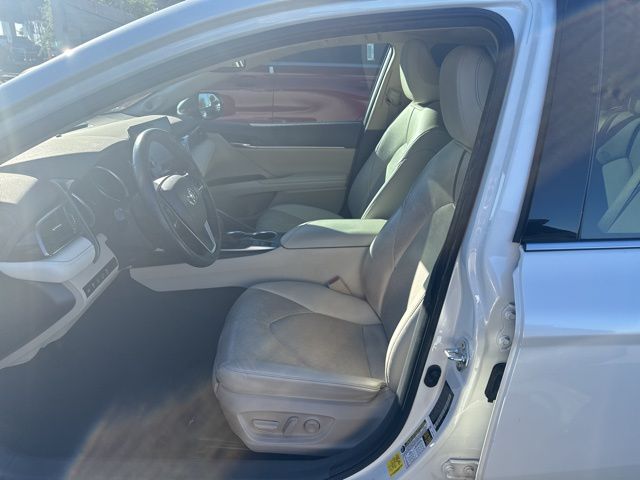 This Toyota Camry Hybrid is equipped with 2.5L I4 DOHC 16V, 4-Wheel Disc Brakes, 6 Speakers, ABS brakes, Air Conditioning, Alloy wheels, AM/FM radio: SiriusXM, Apple CarPlay/Android Auto, Auto High-beam Headlights, Auto-dimming Rear-View mirror, Automatic temperature control, Brake assist, Bumpers: body-color, Delay-off headlights, Driver door bin, Driver vanity mirror, Dual front impact airbags, Dual front side impact airbags, Electronic Stability Control, Emergency communication system: Safety Connect with 1-year trial, Exterior Parking Camera Rear, Four wheel independent suspension, Front anti-roll bar, Front Bucket Seats, Front Center Armrest, Front dual zone A/C, Front reading lights, Fully automatic headlights, Garage door transmitter: HomeLink, Heated door mirrors, Heated front seats, Illuminated entry, Knee airbag, Low tire pressure warning, Multi-Stage Heated Front Bucket Seats, Occupant sensing airbag, Outside temperature display, Overhead airbag, Overhead console, Panic alarm, Passenger door bin, Passenger vanity mirror, Perforated Leather Seat Trim, Power door mirrors, Power driver seat, Power passenger seat, Power steering, Power windows, Radio data system, Radio: AM/FM/HD Audio Plus, Rear anti-roll bar, Rear reading lights, Rear seat center armrest, Rear side impact airbag, Rear window defroster, Remote keyless entry, Security system, Speed control, Speed-sensing steering, Split folding rear seat, Steering wheel mounted audio controls, Telescoping steering wheel, Tilt steering wheel, Traction control, Trip computer, Turn signal indicator mirrors, Variably intermittent wipers, and Wheels: 8.0J x 18" Machined Finish Alloy. Recent Arrival!