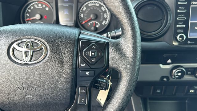 This Toyota Tacoma is equipped with ABS brakes, Active Cruise Control, Electronic Stability Control, Illuminated entry, Low tire pressure warning, Traction control, 6 Speakers, Air Conditioning, AM/FM radio: SiriusXM, AM/FM Stereo, Anti-whiplash front head restraints, Apple CarPlay/Android Auto, Auto High-beam Headlights, Axle Ratio: 4.30, Brake assist, Bumpers: body-color, Driver door bin, Dual front impact airbags, Dual front side impact airbags, Emergency communication system: Safety Connect with 1-year trial, Exterior Parking Camera Rear, Fabric Seat Trim (FB), Front anti-roll bar, Front Bucket Seats, Front Center Armrest, Front reading lights, Front Seats, Front wheel independent suspension, Knee airbag, Occupant sensing airbag, Outside temperature display, Overhead airbag, Overhead console, Passenger door bin, Power door mirrors, Power steering, Power windows, Rear step bumper, Speed control, Speed-sensing steering, Split folding rear seat, Steering wheel mounted audio controls, Tachometer, Telescoping steering wheel, Tilt steering wheel, Variably intermittent wipers, and Wheels: 16" x 7J Style Steel Disc. Recent Arrival! Odometer is 12726 miles below market average!