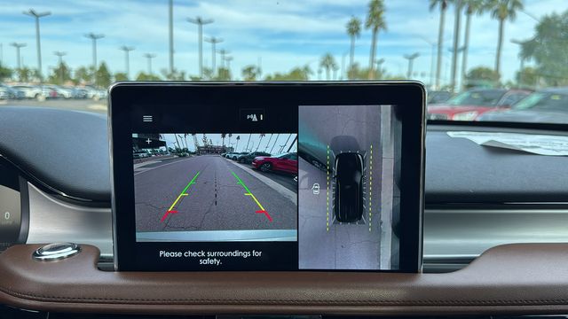 This Lincoln Aviator is equipped with Class IV Trailer Tow Package (4-Pin & 7-Pin Connectors, Blind Spot Information System, Class IV Hitch & Wiring, Smart Trailer Tow, and Trailer Sway Control), Elements Package Plus (Auto Air Refresh, Auto Heated/Ventilated Driver & Passenger Seats, Heated Steering Wheel, Heated VisioBlade Wipers, and Heated/Ventilated 2nd Row Outboard Seats), Equipment Group 201A (Head-Up Display and Phone As A Key), Illumination Package (Adaptive Pixel LED Headlamps, Illuminated Lincoln Star in Grille, and LED Fog Lamps), Lincoln Co-Pilot360 1.5 Plus (Active Park Assist 2.0, Evasive Steering Assist, Intelligent Adaptive Cruise Control, and Reverse Brake Assist), Lincoln Certified Pre-Owned Certified, 14 Speakers, 3.58 Axle Ratio, 3rd row seats: split-bench, 4-Wheel Disc Brakes, ABS brakes, Air Conditioning, All-Weather 1st & 2nd Row Floor Liners, Alloy wheels, AM/FM radio: SiriusXM, Audio memory, Auto High-beam Headlights, Auto-dimming door mirrors, Auto-dimming Rear-View mirror, Automatic temperature control, Brake assist, Bumpers: body-color, Compass, Delay-off headlights, Driver door bin, Driver vanity mirror, Dual front impact airbags, Dual front side impact airbags, Electronic Stability Control, Emergency communication system, Enhanced Security System Lite, Four wheel independent suspension, Front anti-roll bar, Front Bucket Seats, Front Center Armrest, Front dual zone A/C, Front reading lights, Full Rear Console, Fully automatic headlights, Garage door transmitter, Hands-Free Liftgate Delete, Heated door mirrors, Heated front seats, HVAC memory, Illuminated entry, Knee airbag, Leather steering wheel, Linear Brushed Aluminum Applique, Low tire pressure warning, Memory seat, Navigation System, Occupant sensing airbag, Outside temperature display, Overhead airbag, Overhead console, Panic alarm, Passenger door bin, Passenger vanity mirror, Power door mirrors, Power driver seat, Power Liftgate, Power moonroof: Panoramic Vista Roof, Power passenger seat, Power steering, Power windows, Premium Lthr Heated/Ventilated Fnt Captain's Chairs, Radio data system, Radio: Revel AM/FM Audio System w/14 Speakers, Rain sensing wipers, Rear air conditioning, Rear anti-roll bar, Rear audio controls, Rear dual zone A/C, Rear reading lights, Rear window defroster, Rear window wiper, Remote keyless entry, Security system, SiriusXM Radio, Speed control, Speed-Sensitive Wipers, Split folding rear seat, Spoiler, Steering wheel memory, Steering wheel mounted A/C controls, Steering wheel mounted audio controls, SYNC 3 Communication & Entertainment System, Tachometer, Telescoping steering wheel, Tilt steering wheel, Traction control, Trip computer, Turn signal indicator mirrors, Variably intermittent wipers, and Wheels: 20" Bright-Machined Aluminum. Recent Arrival! Odometer is 14145 miles below market average!