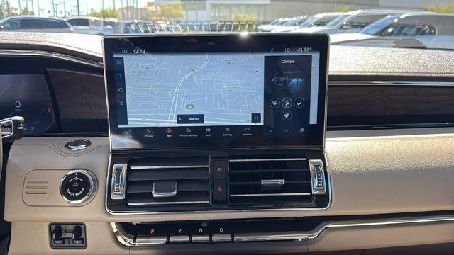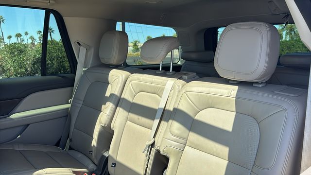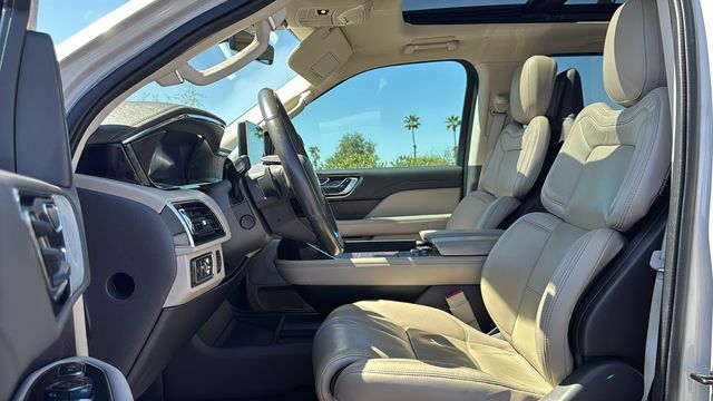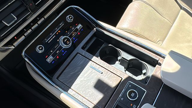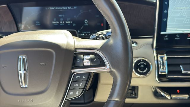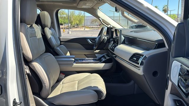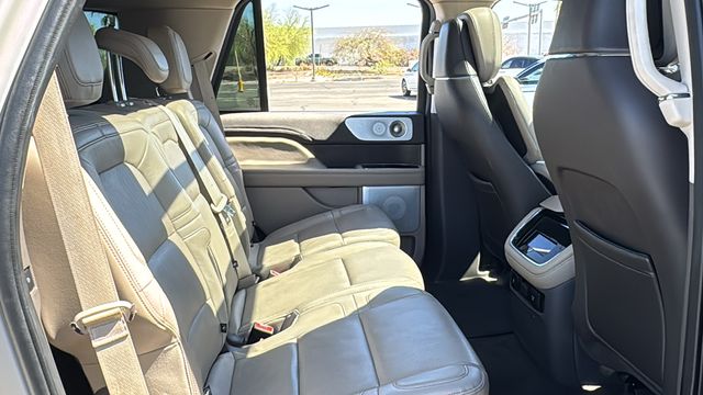 This Lincoln Navigator is equipped with Equipment Group 201A Reserve I, Heavy-Duty Trailer Tow Package (26mm Radiator, Class IV w/4-Pin & 7-Pin Connectors, Electronic Traction Assist (eLSD), Front Tow Hooks, Pro-Trailer Backup Assist 2.0, Smart Trailer Tow, Tiered Cargo Area Management System, Trailer Brake Controller, and Trailer Sway Control), Luxury Package (Illuminated 1st & 2nd Row Seat Belts, Lincoln Lit Star in Grille, Perfect Position Seats (30-Way) w/Active Motion, and Radio: Revel Ultima 3D Audio System w/28 Speakers), 4WD, Sandstone, 14 Speakers, 2nd Row Htd/Ventilated 40/20/40 Split Bench Seat, 3.73 Axle Ratio, 3rd row seats: split-bench, 4-Wheel Disc Brakes, ABS brakes, Active Park Assist 2.0 Delete, Adaptive suspension, Adjustable pedals, Air Conditioning, Alloy wheels, AM/FM radio: SiriusXM with 360L, Audio memory, Auto High-beam Headlights, Auto Start-Stop Technology, Auto tilt-away steering wheel, Auto-dimming door mirrors, Auto-dimming Rear-View mirror, Auto-leveling suspension, Automatic temperature control, Bodyside moldings, Brake assist, Bumpers: body-color, Chrome Roof Rack w/Black Crossbars, Compass, Delay-off headlights, Driver door bin, Driver vanity mirror, Driver's Seat Mounted Armrest, Dual front impact airbags, Dual front side impact airbags, Electronic Stability Control, Emergency communication system: 911 Assist, Exterior Parking Camera Rear, Four wheel independent suspension, Front anti-roll bar, Front Bucket Seats, Front dual zone A/C, Front fog lights, Front reading lights, Fully automatic headlights, Garage door transmitter, Genuine wood dashboard insert, Genuine wood door panel insert, Hands-Free Liftgate Delete, Head restraints memory, Heads-Up Display, Heated door mirrors, Heated front seats, Heated rear seats, Heated steering wheel, HVAC memory, Illuminated entry, Leather steering wheel, Low tire pressure warning, Memory seat, Navigation system: Connected Navigation (3-year trial), Occupant sensing airbag, Outside temperature display, Overhead airbag, Overhead console, Panic alarm, Passenger door bin, Passenger seat mounted armrest, Passenger vanity mirror, Pedal memory, Power adjustable rear head restraints, Power door mirrors, Power driver seat, Power Liftgate, Power moonroof: Panoramic Vista Roof, Power passenger seat, Power steering, Power windows, Prem Lthr Auto Htd/Ventiltd Perfect Position Seats, Radio data system, Radio: Revel AM/FM/HD/MP3 Audio System, Rain sensing wipers, Rear air conditioning, Rear anti-roll bar, Rear audio controls, Rear reading lights, Rear window defroster, Rear window wiper, Reclining 3rd row seat, Remote keyless entry, Security system, SiriusXM w/360L, Slow Climb Drive Mode, Speed control, Speed-sensing steering, Speed-Sensitive Wipers, Split folding rear seat, Spoiler, Steering wheel memory, Steering wheel mounted audio controls, SYNC 4 Communications & Entertainment System, Tachometer, Telescoping steering wheel, Tilt steering wheel, Traction control, Trip computer, Turn signal indicator mirrors, Variably intermittent wipers, Ventilated front seats, Ventilated rear seats, Voice-Activated Touchscreen Navigation System, and Wheels: 22" Bright Machined Aluminum. Recent Arrival! Odometer is 21411 miles below market average!
